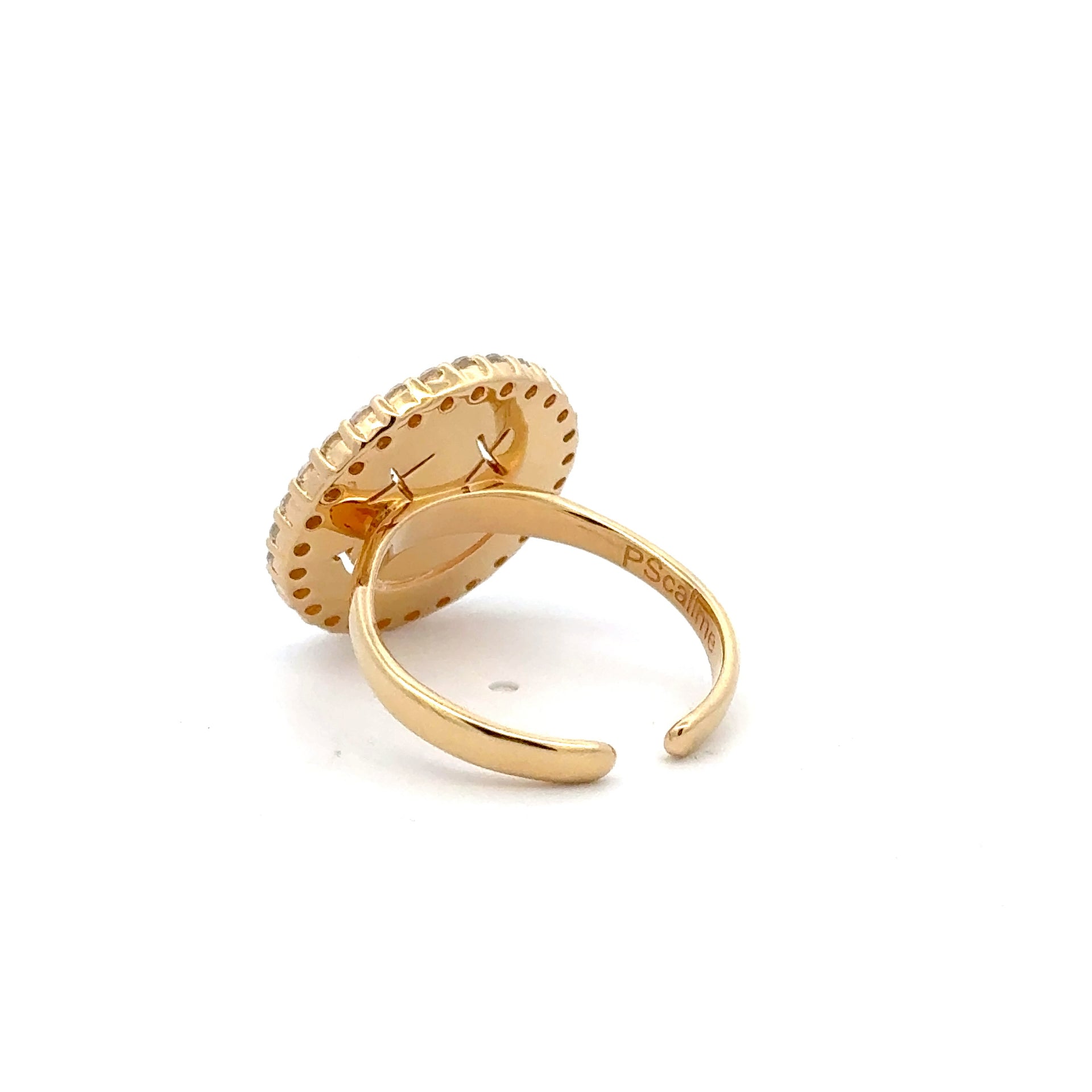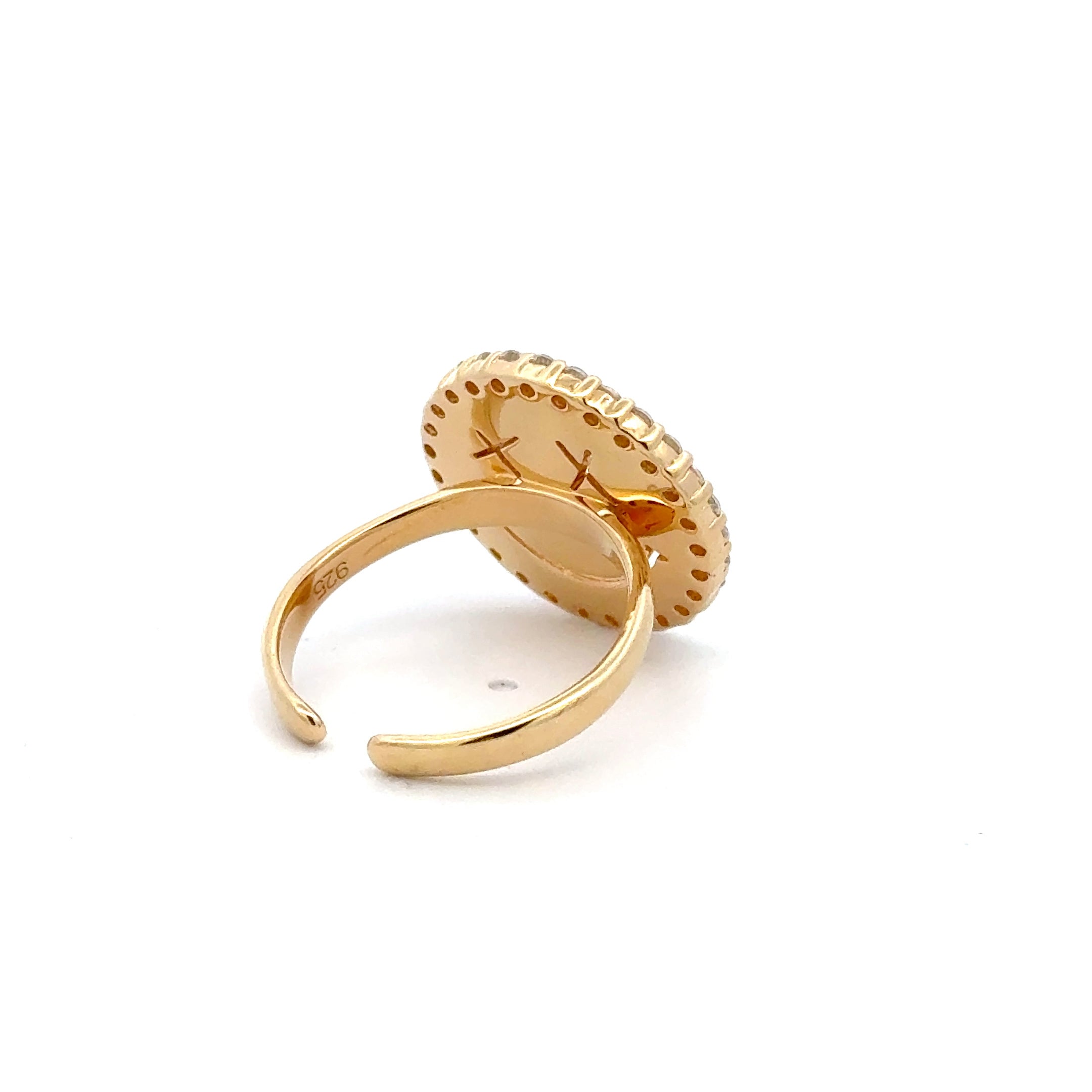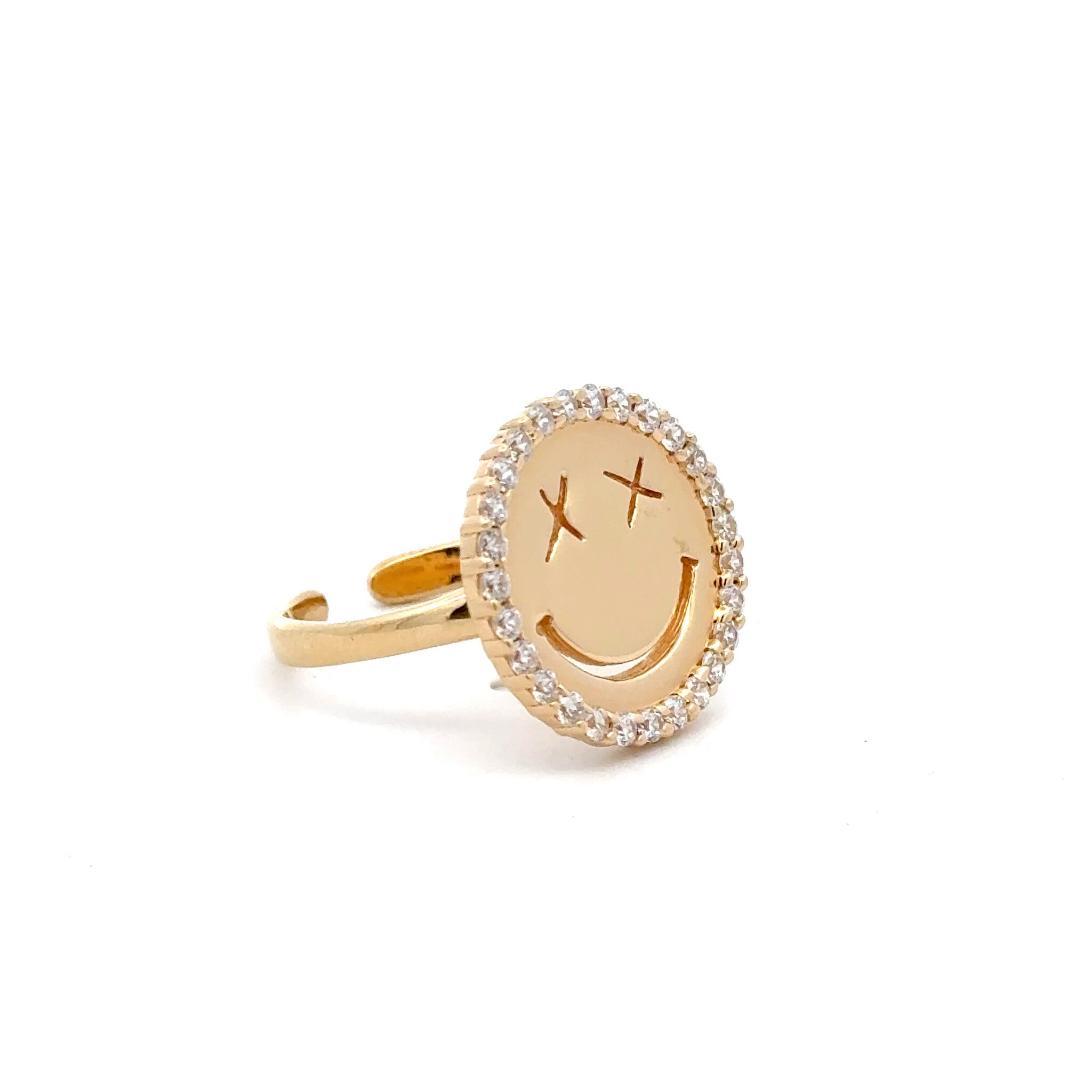 Bague dorée avec zircones blanches et smiley avec des croix en guise d'yeux
