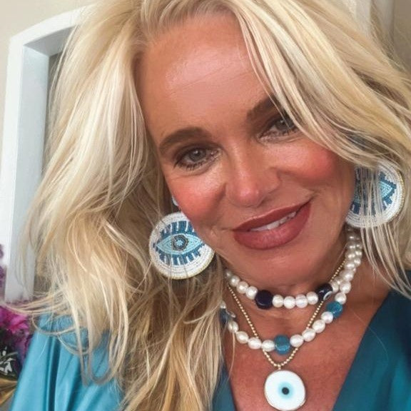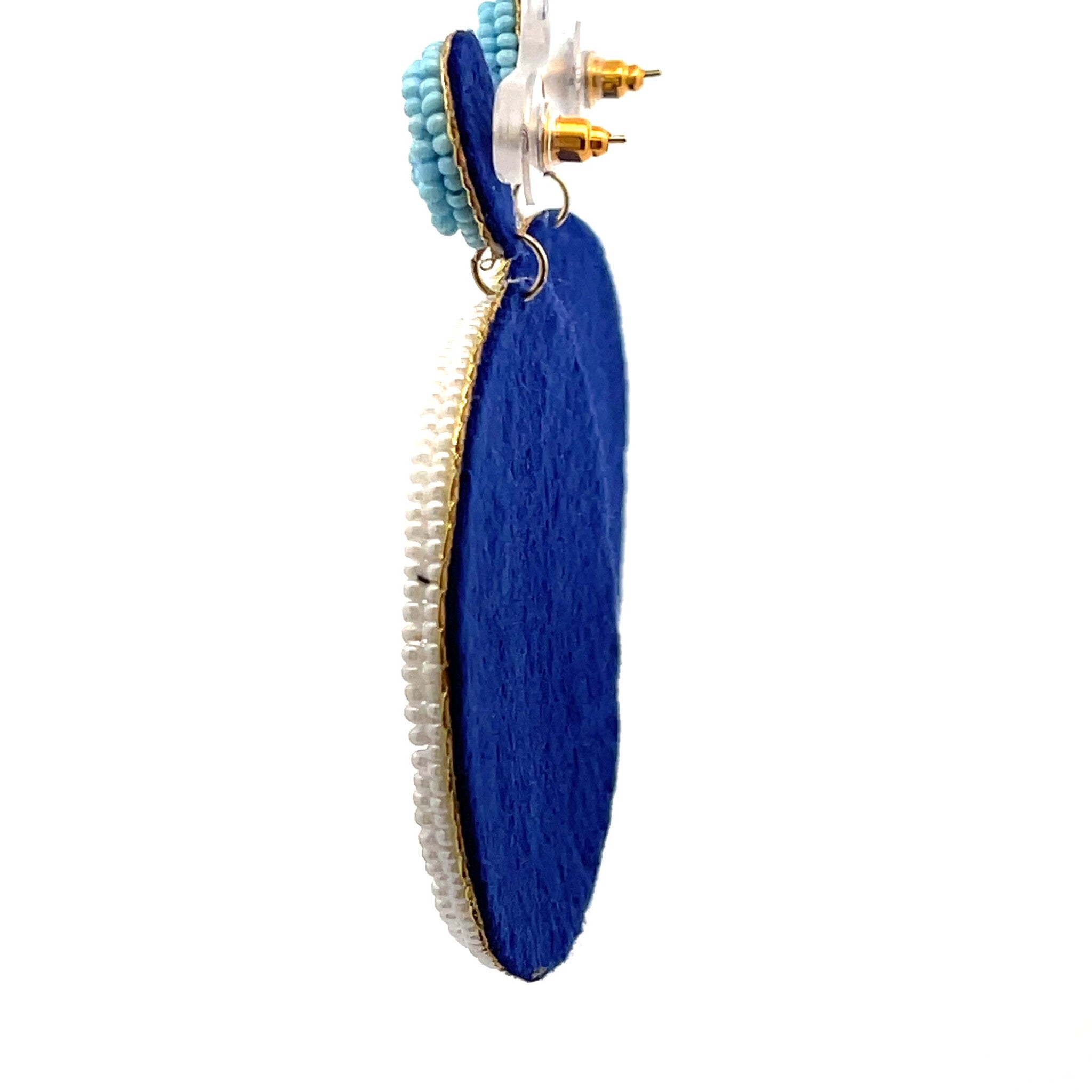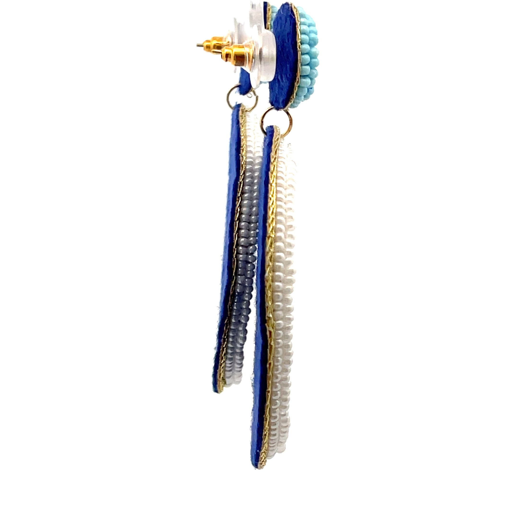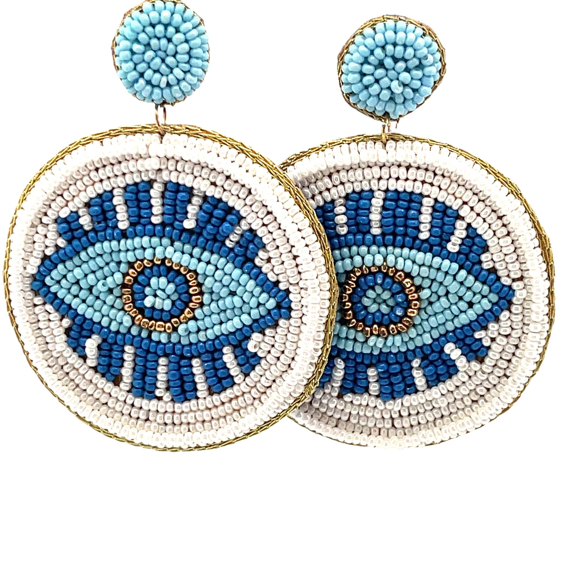 Orecchini con pendente rotondo colorato con un occhio portafortuna realizzato con piccole perline.