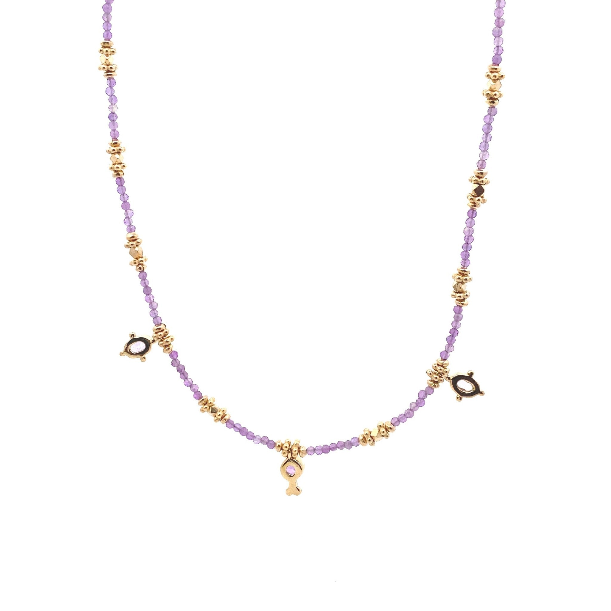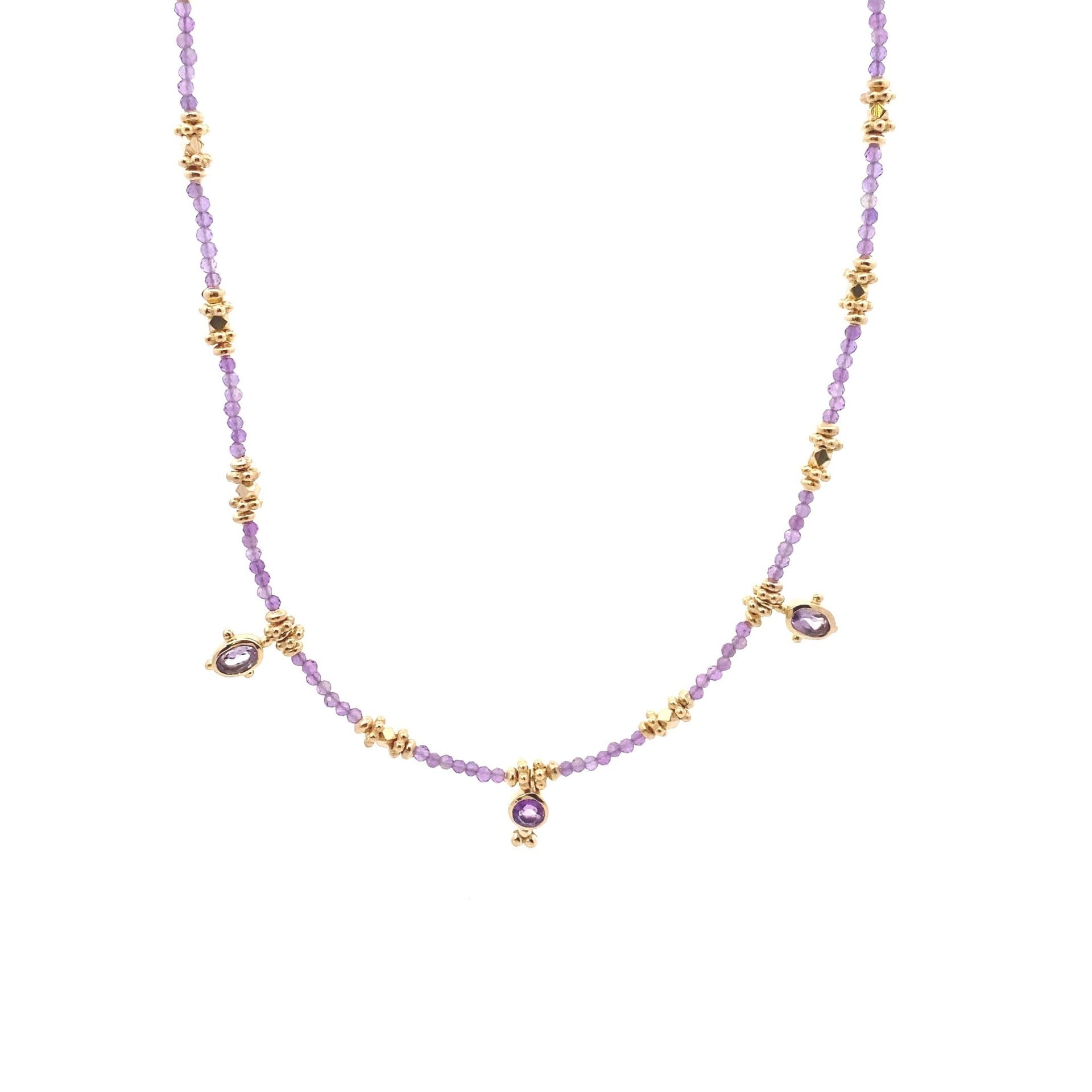 Collana con pietre colorate e 3 piccole gocce di pietre.