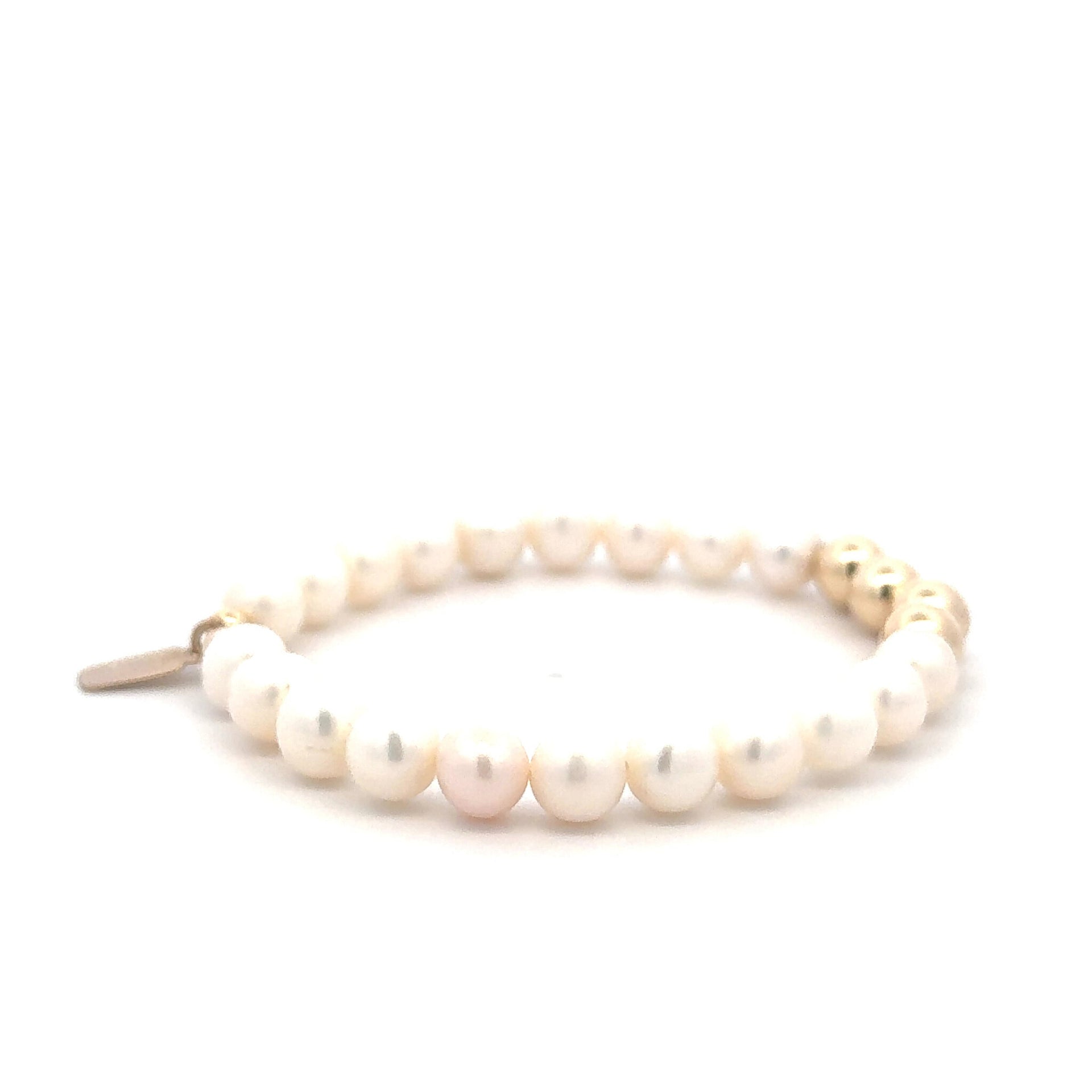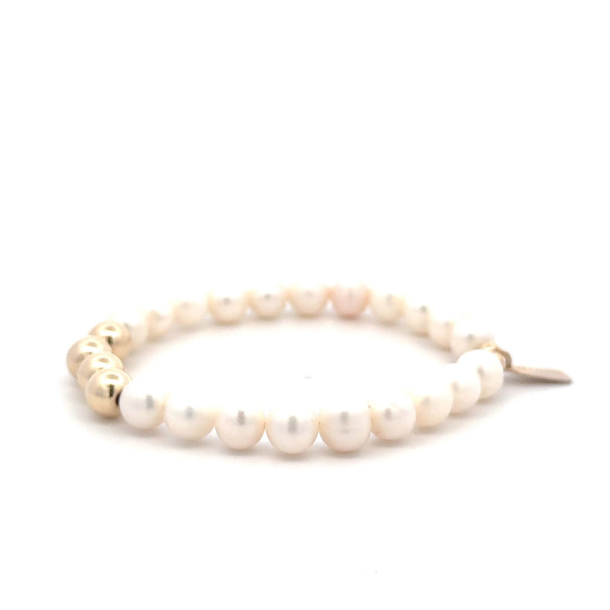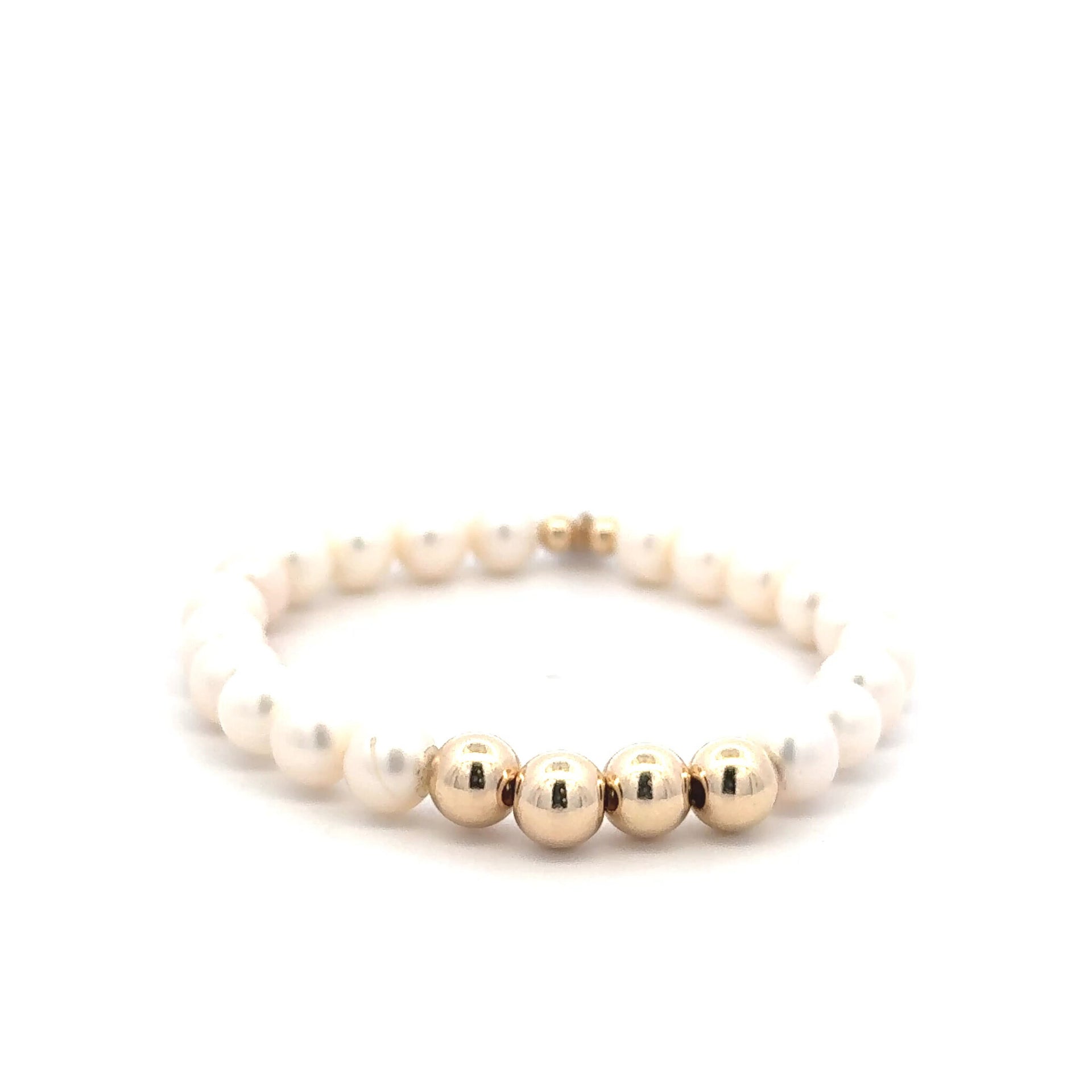 Elastic bracelet with round pearls and a row of four 7mm beads.