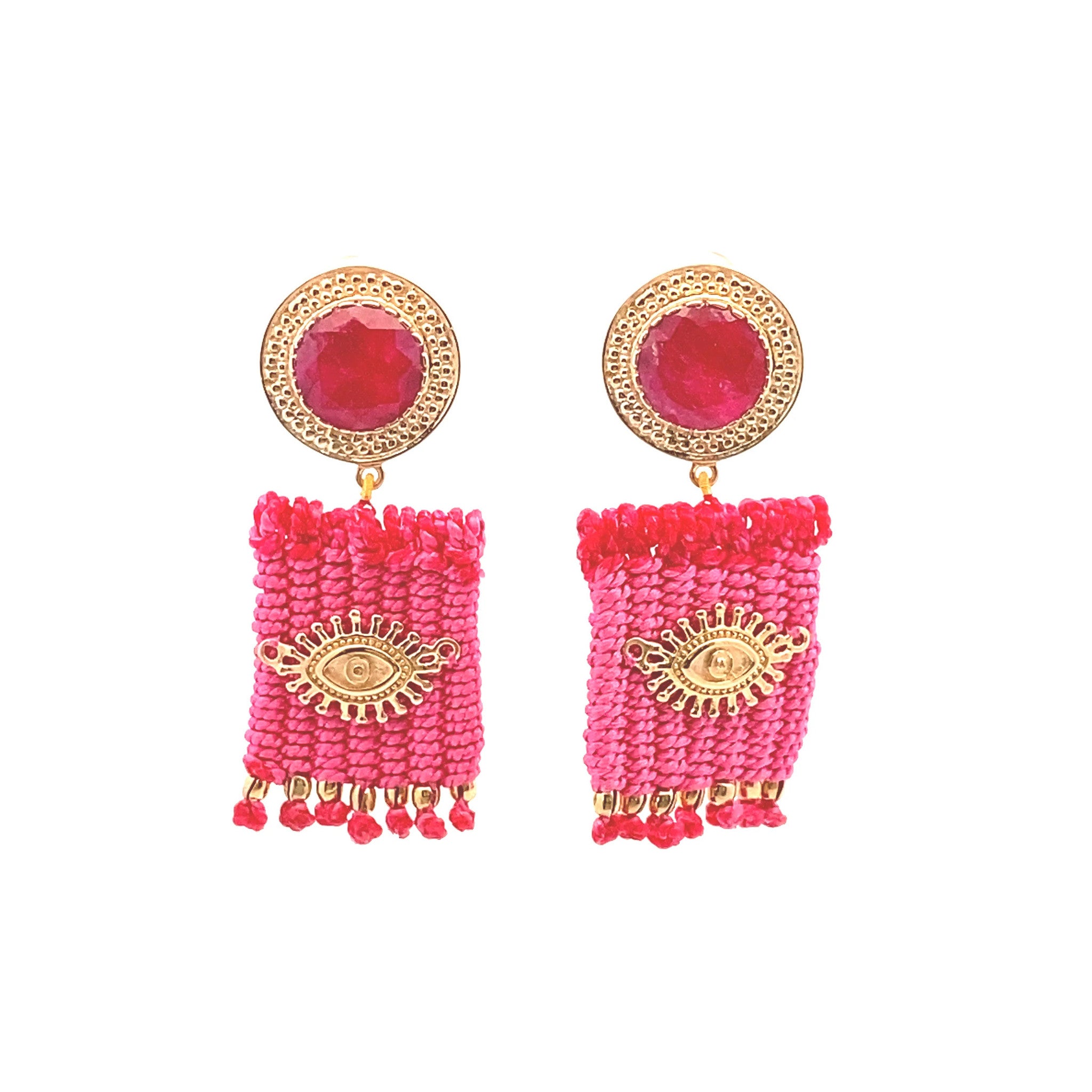 Earrings eye arrabic fuchsia goldplated