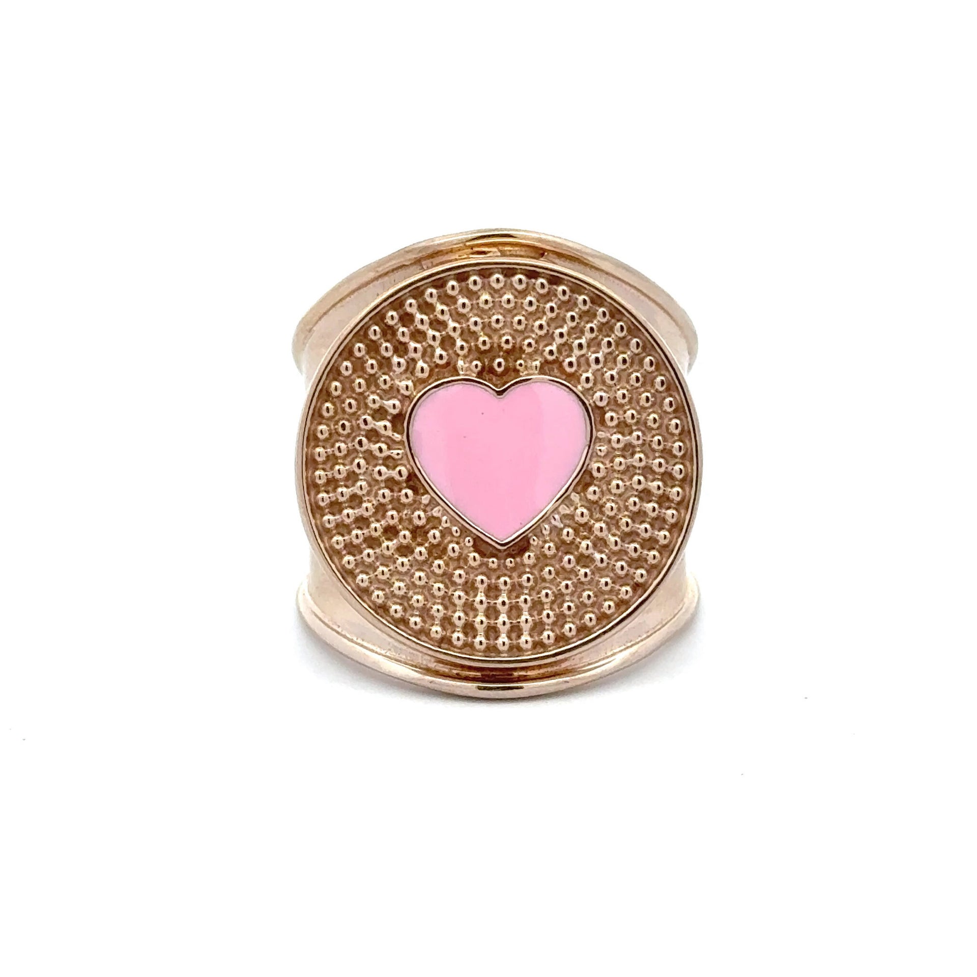 Goudkleurige ring met een gekleurd licht roze hartje in het midden