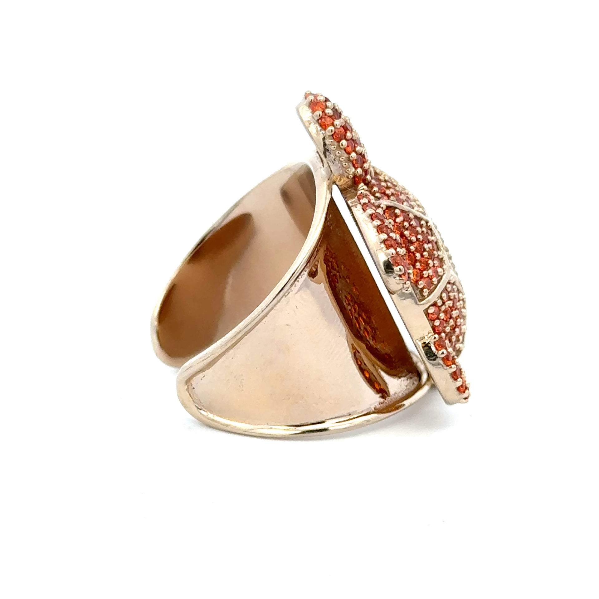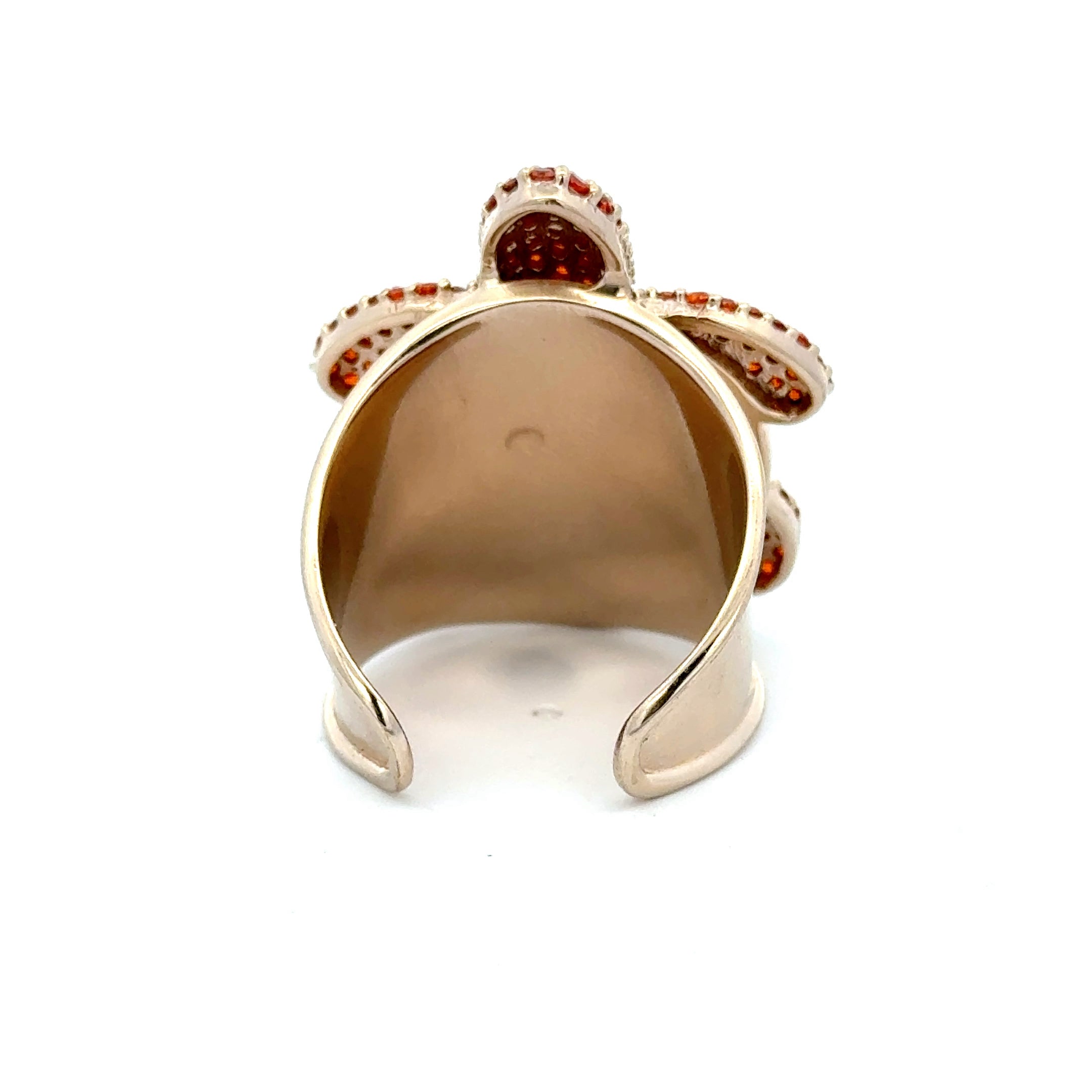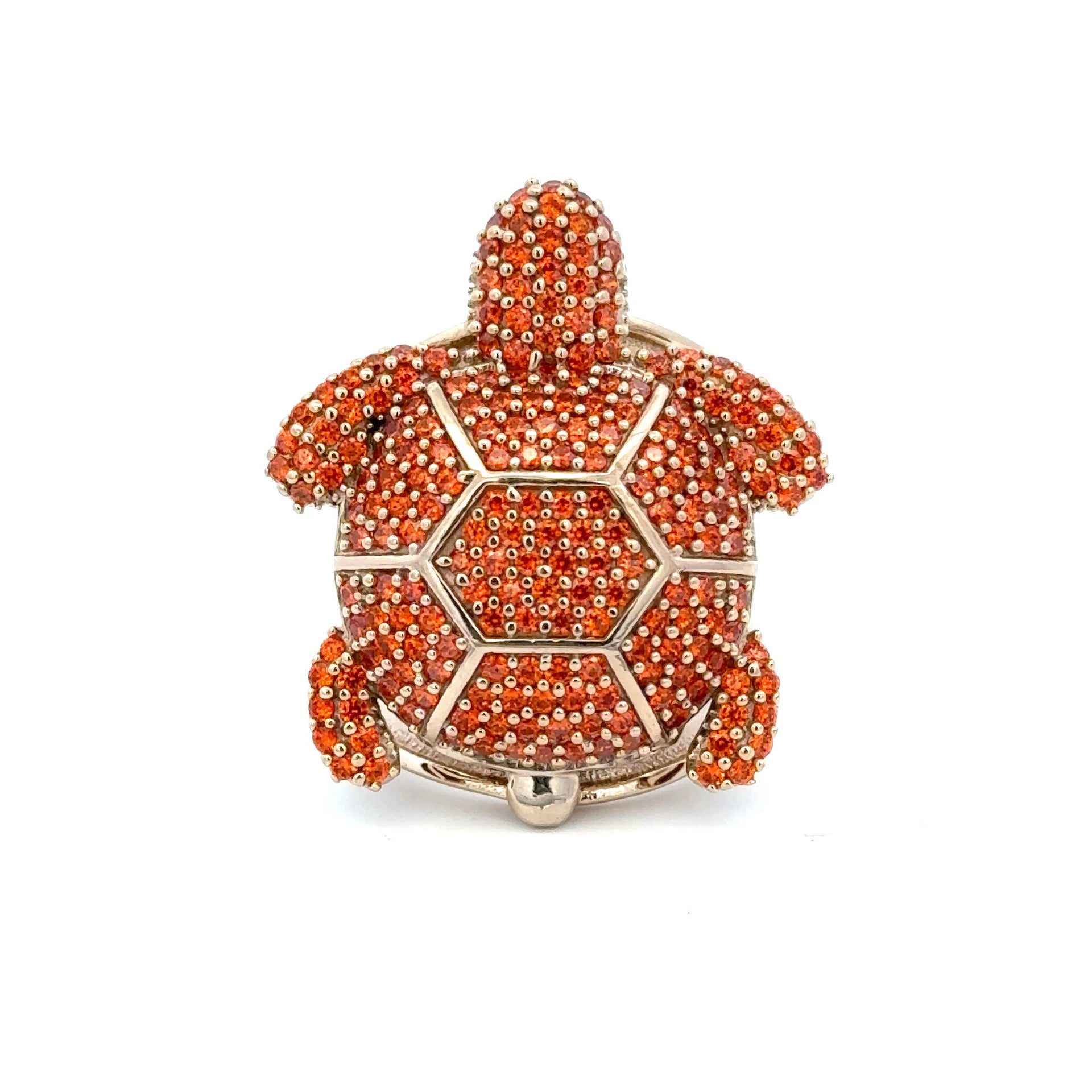 Goudkleurige ring met een schildpad vol met oranje zirkonia stenen