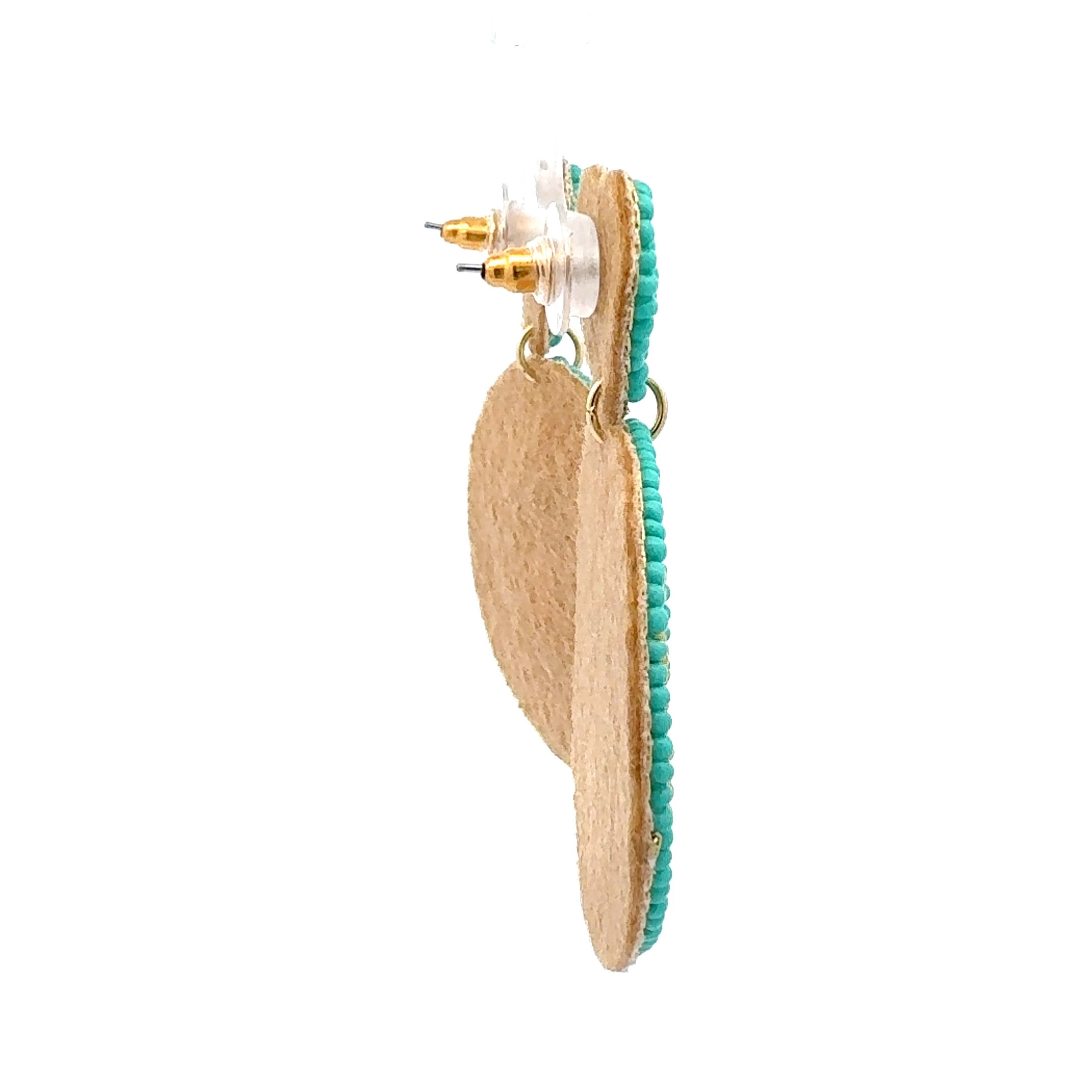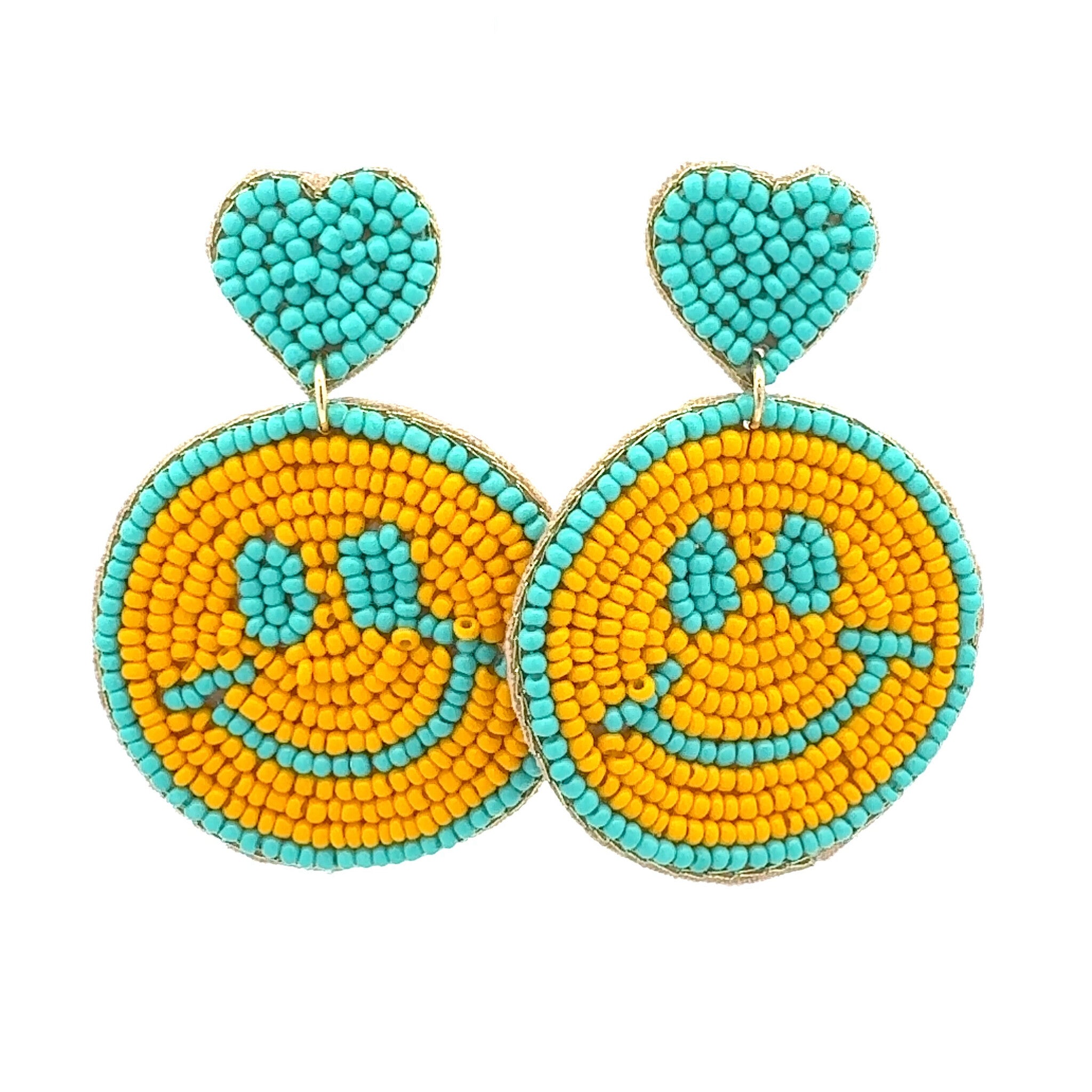 Earrings with a smiley-shaped pendant featuring turquoise beads