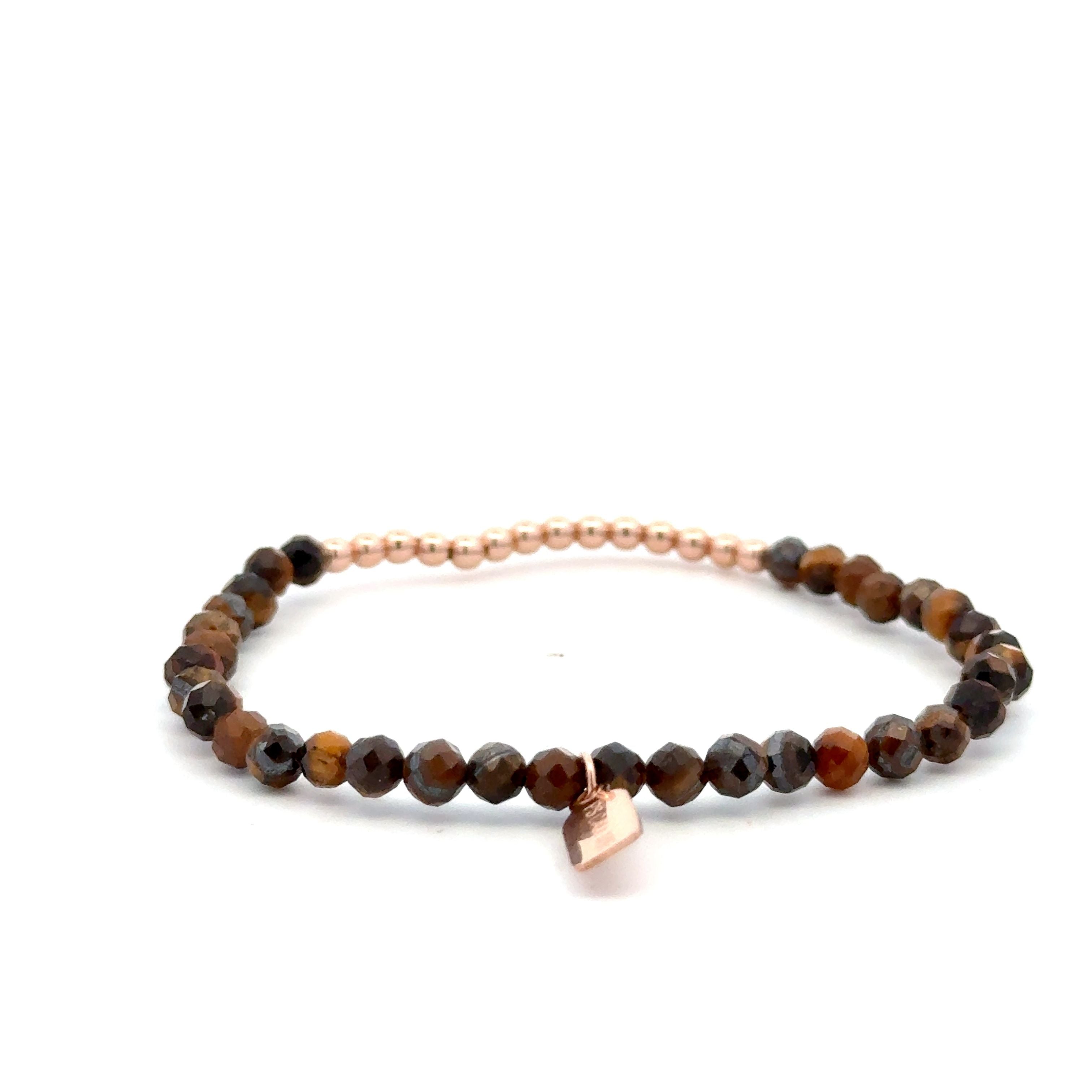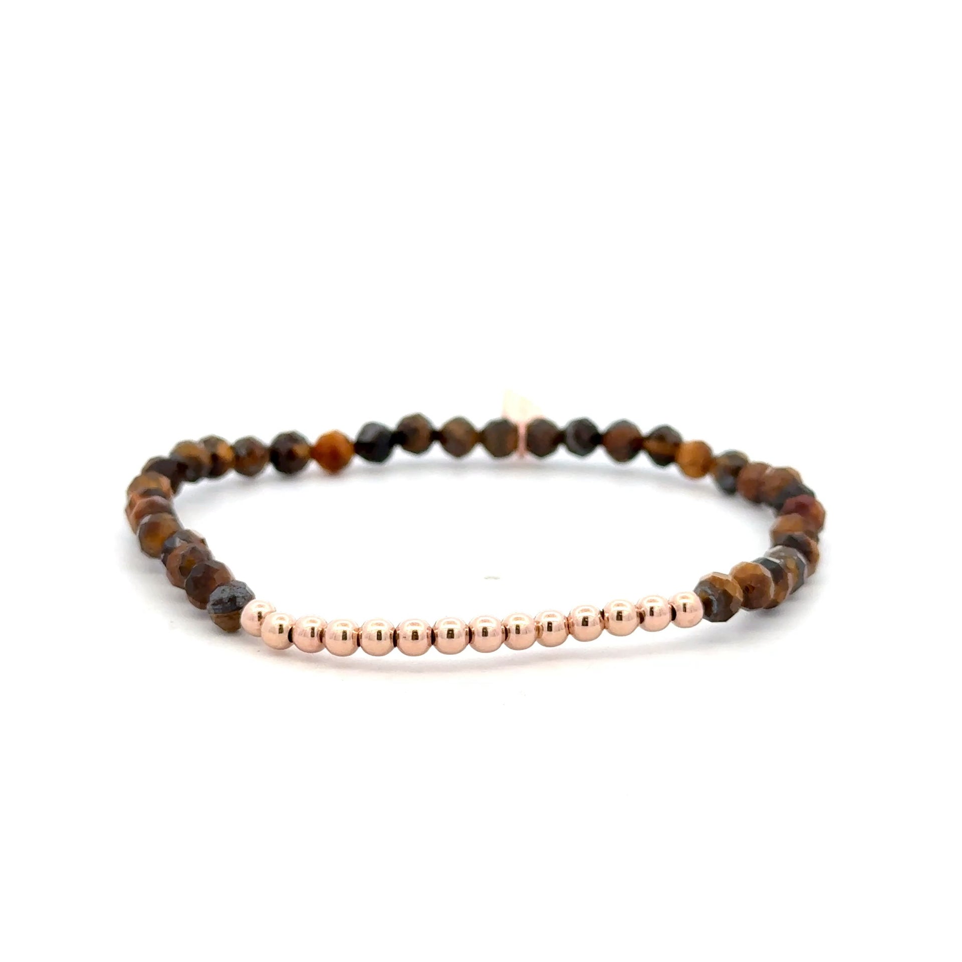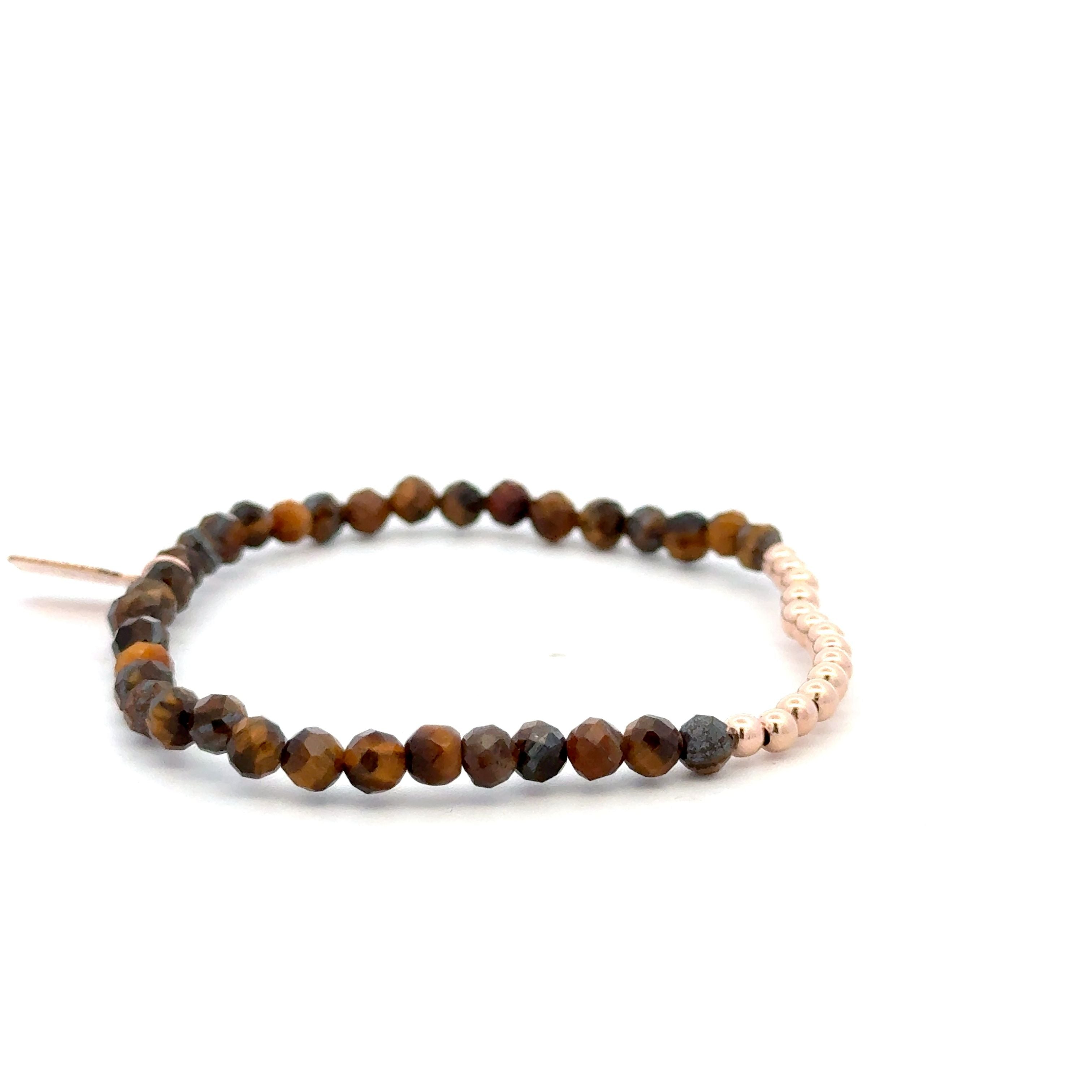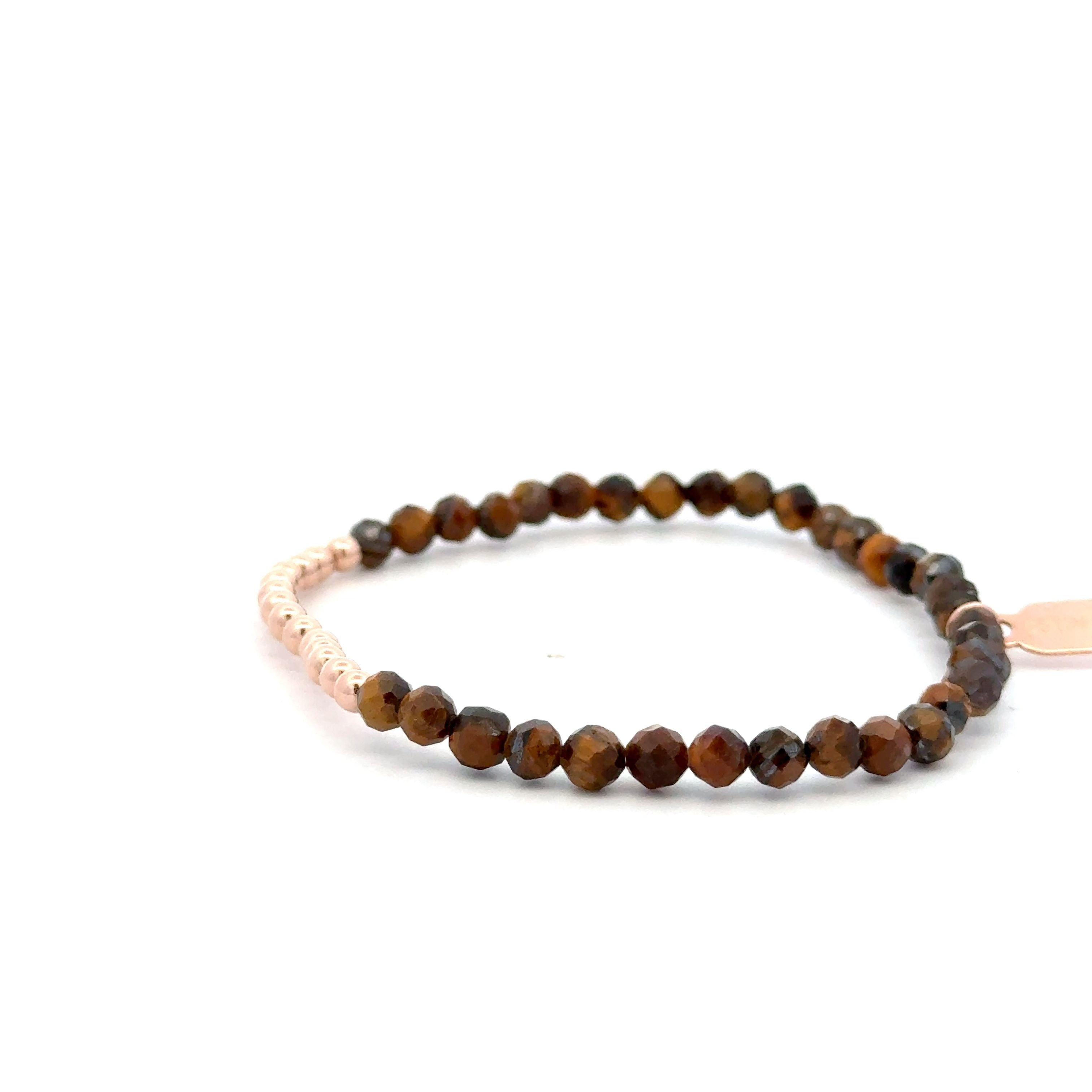 Elastic bracelet with colored stones and a row of rose gold balls.
