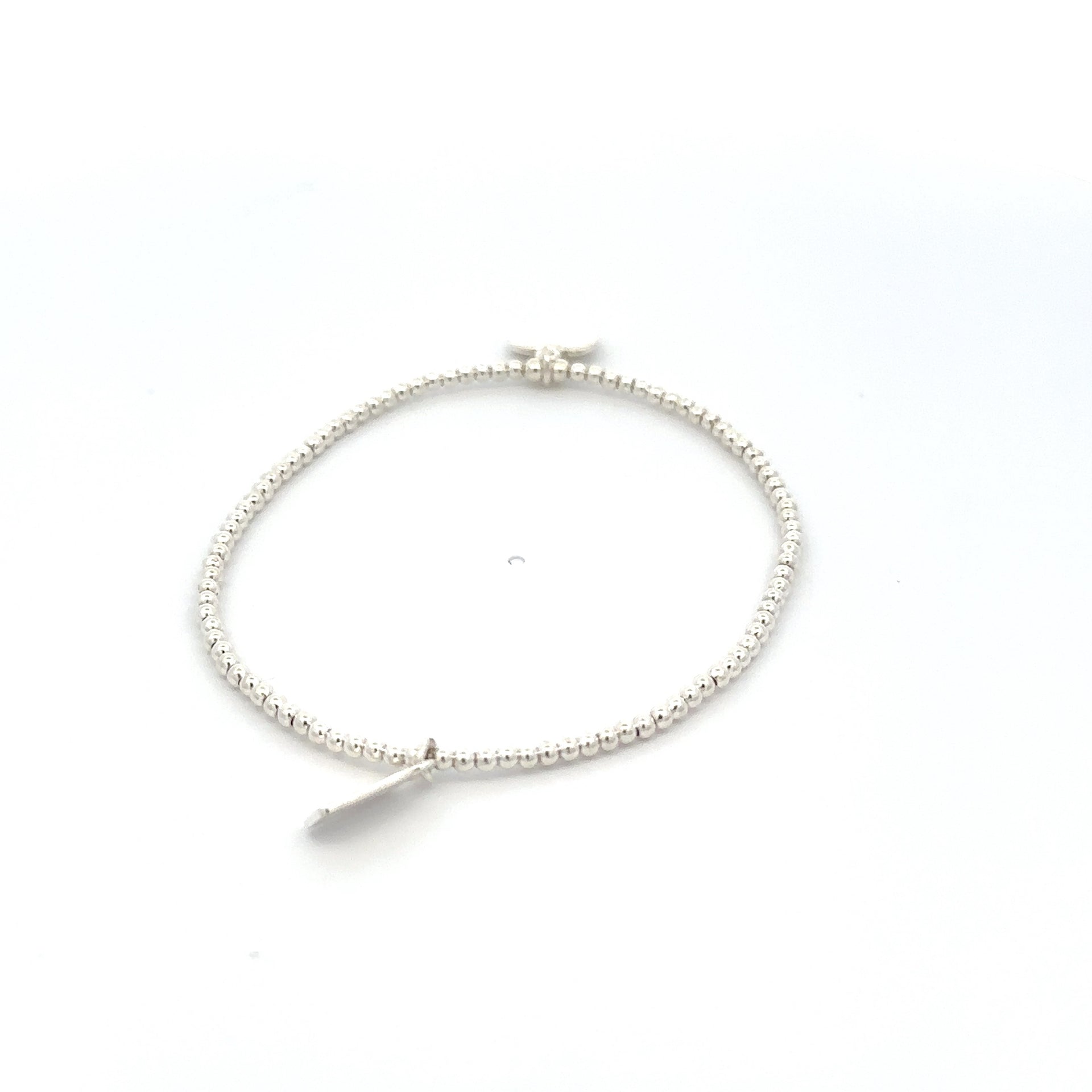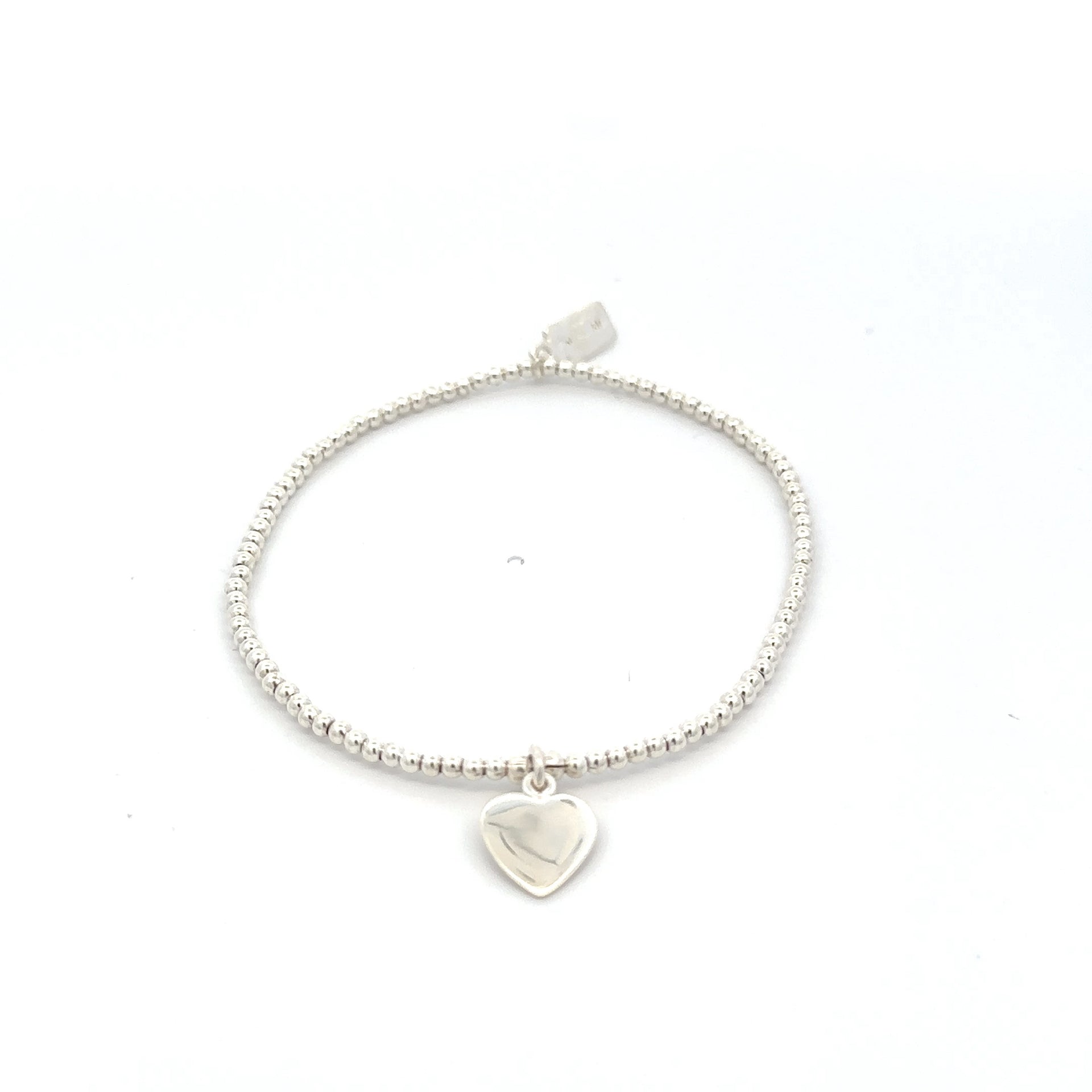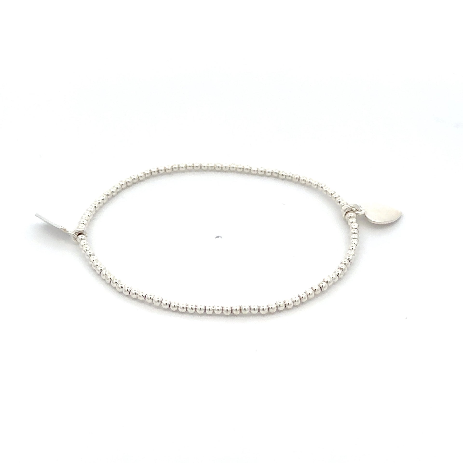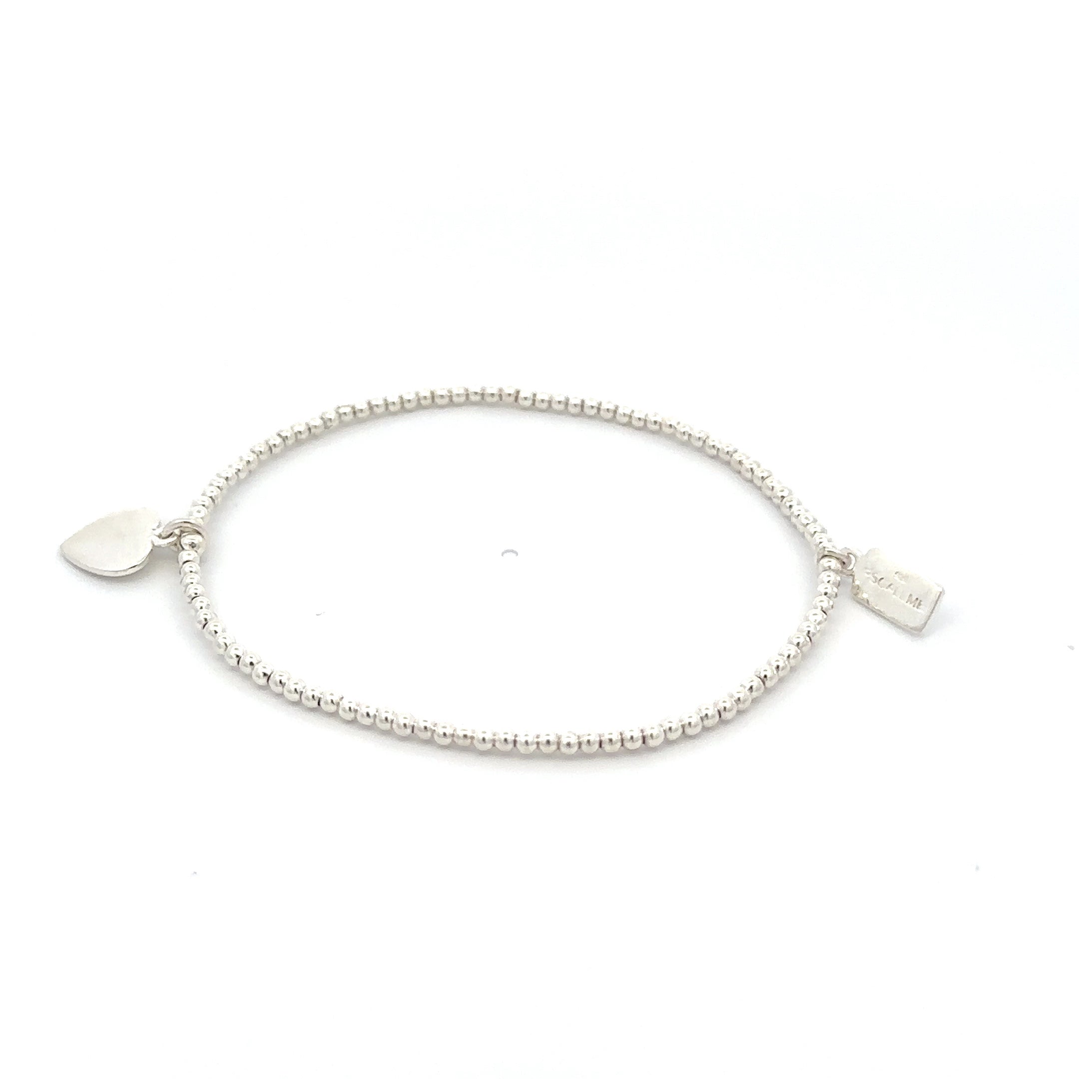 Elastic bracelet with silver balls and a charm in the shape of a heart.
