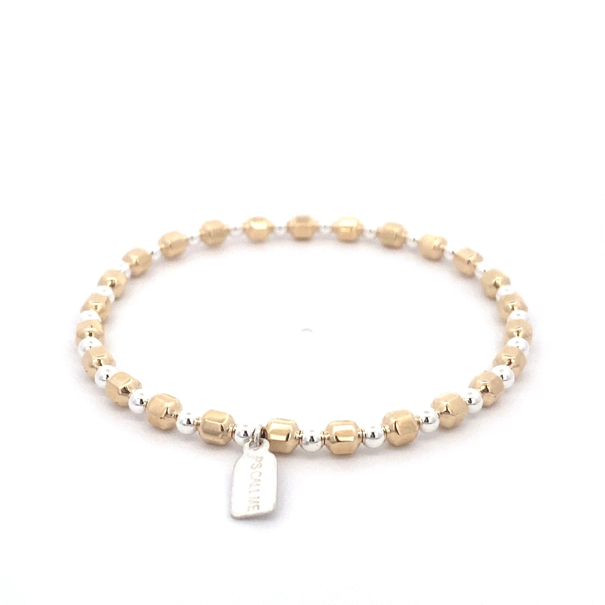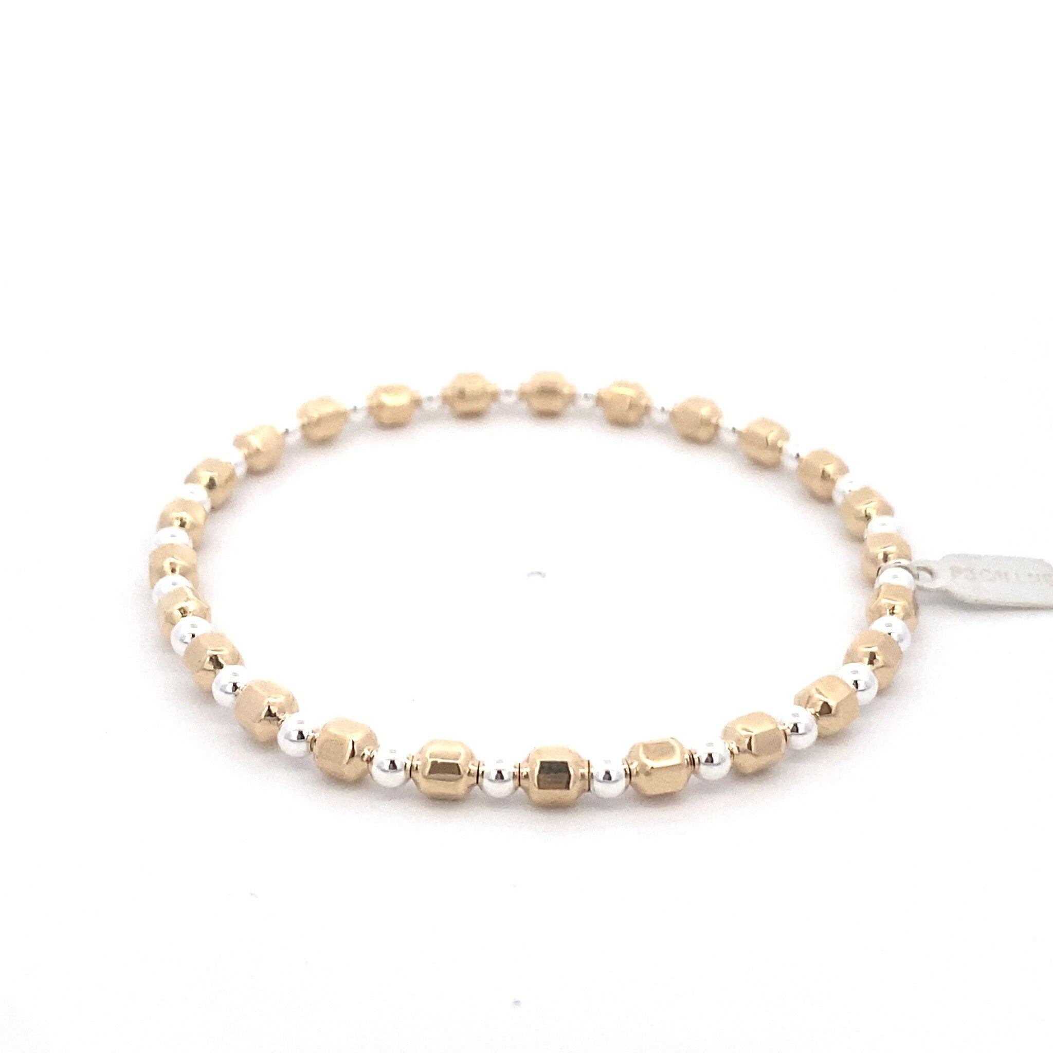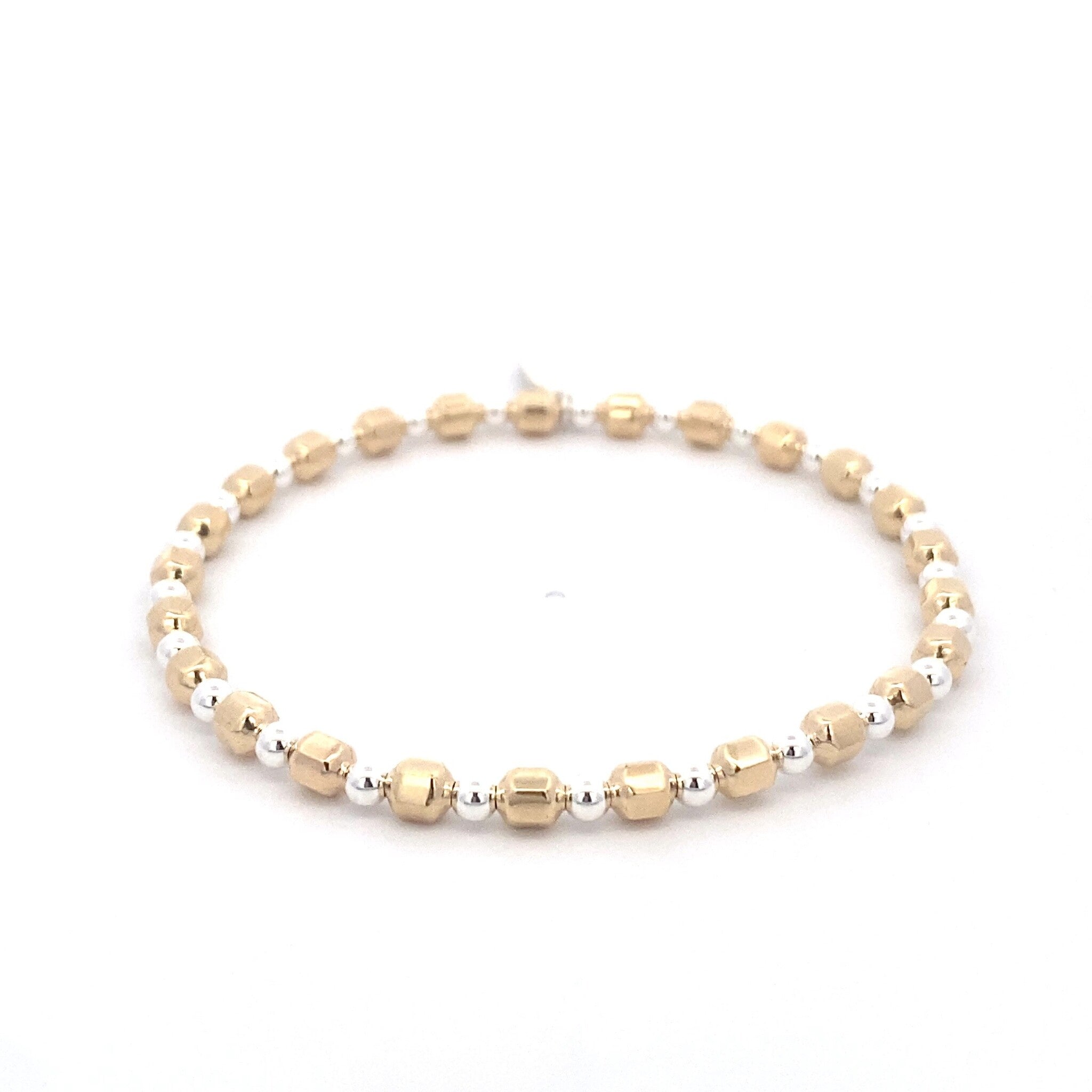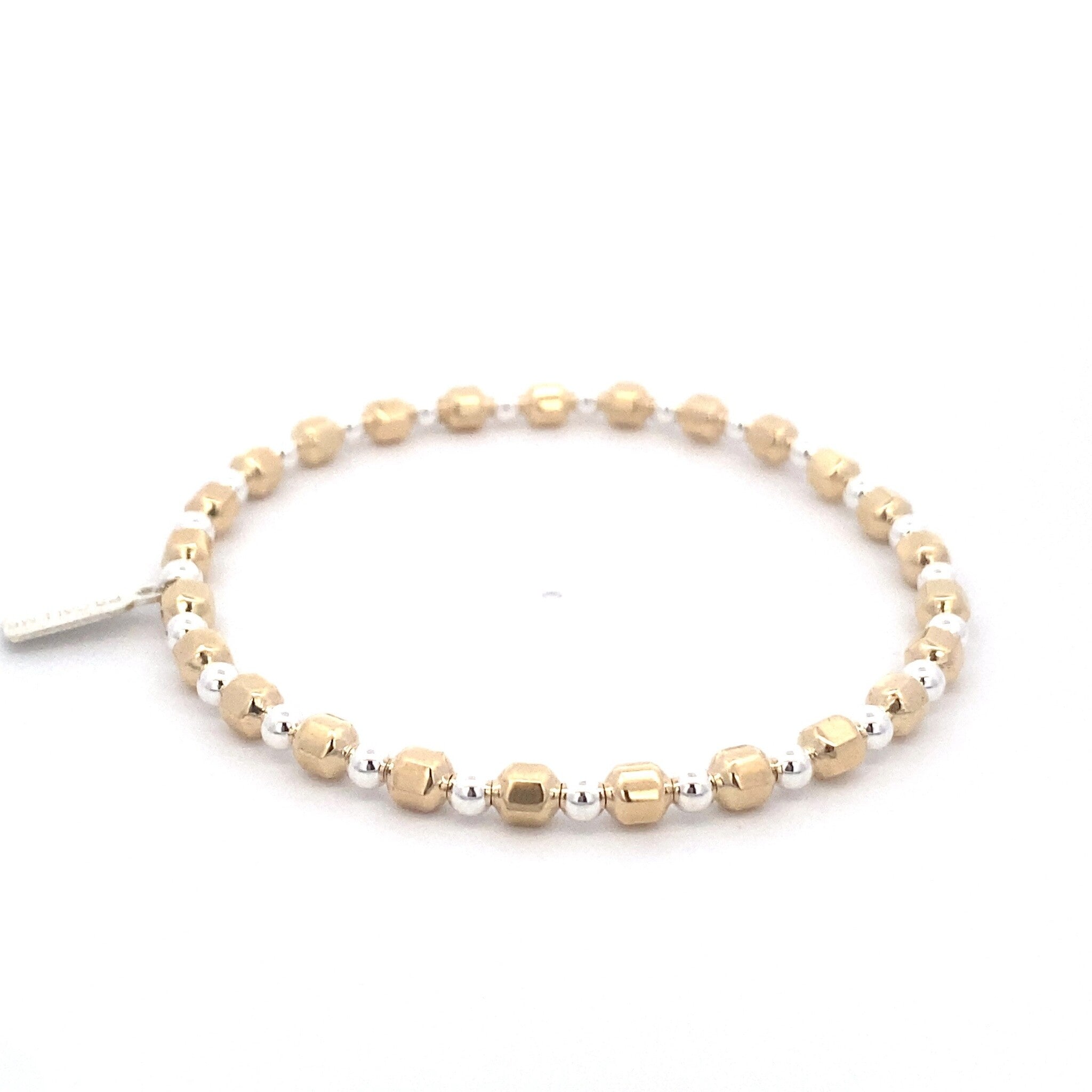 Elastic bracelet with gold-colored hexagon beads mixed with silver beads
