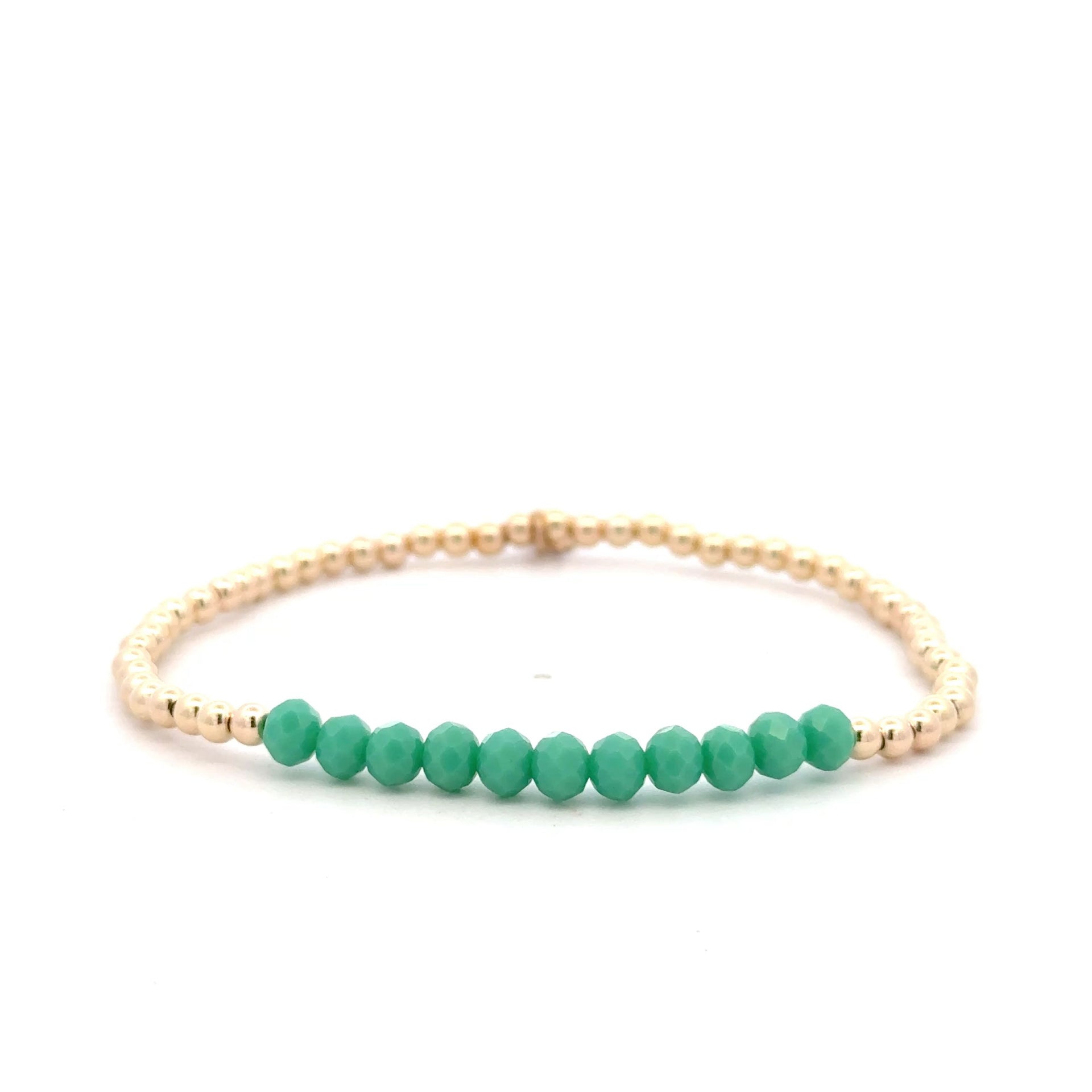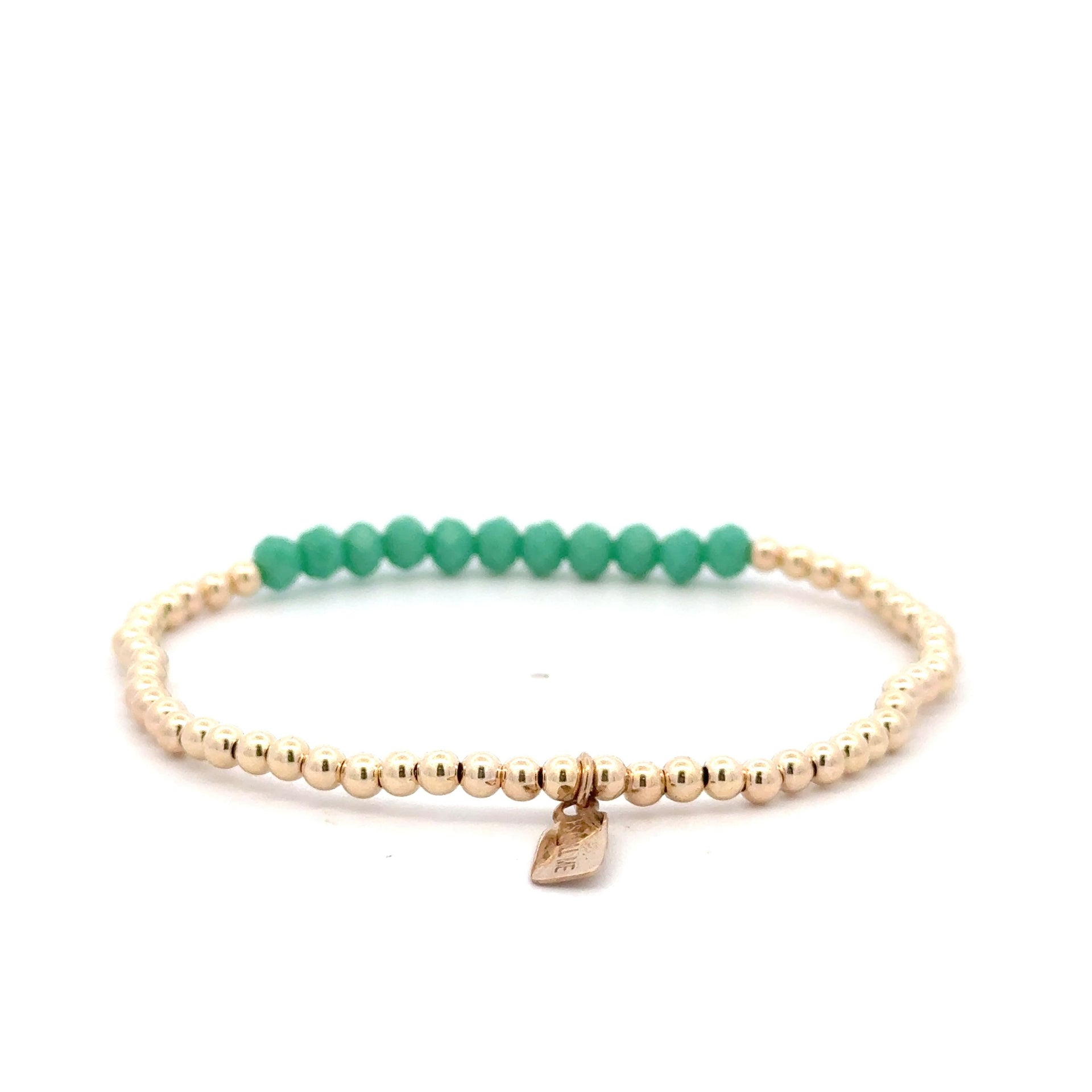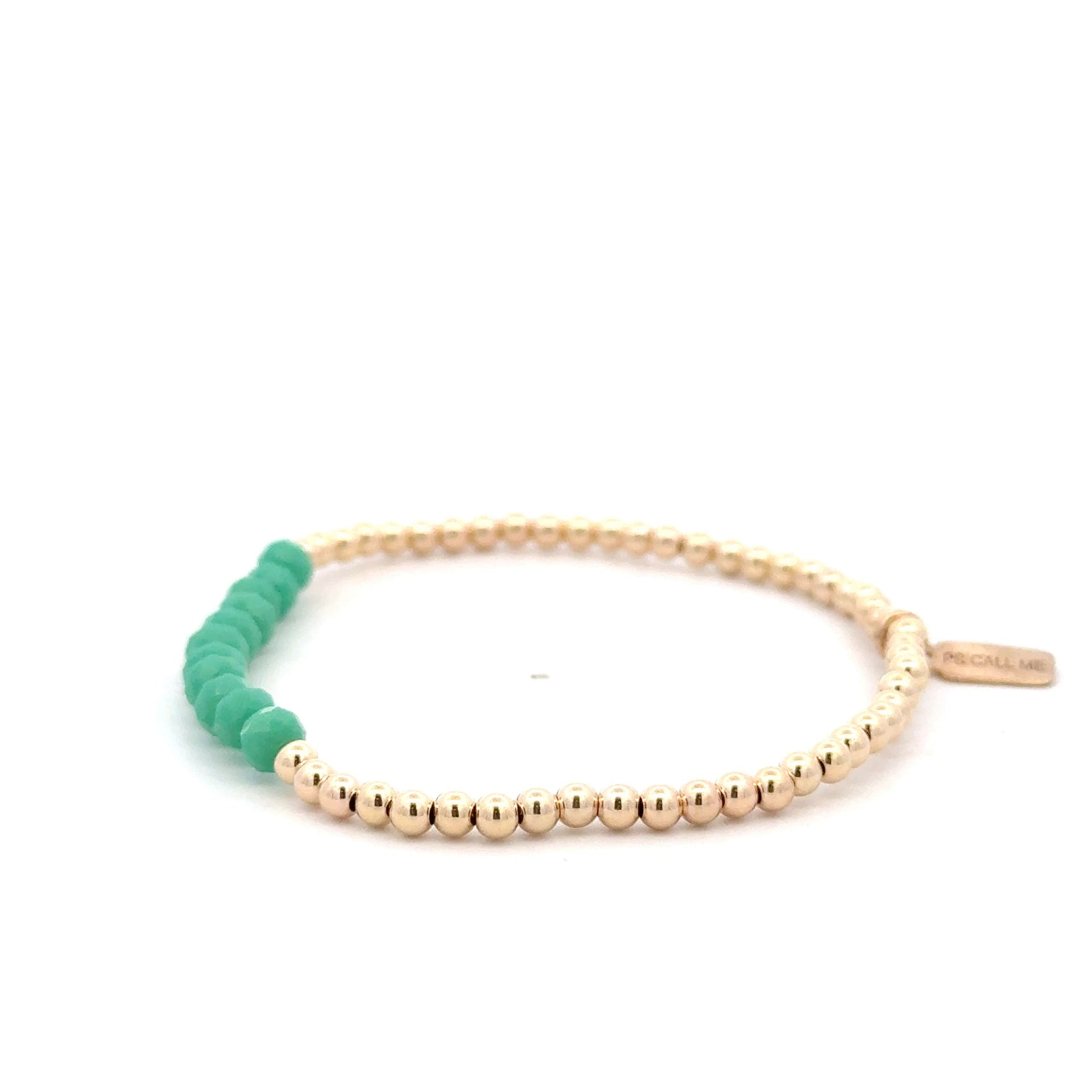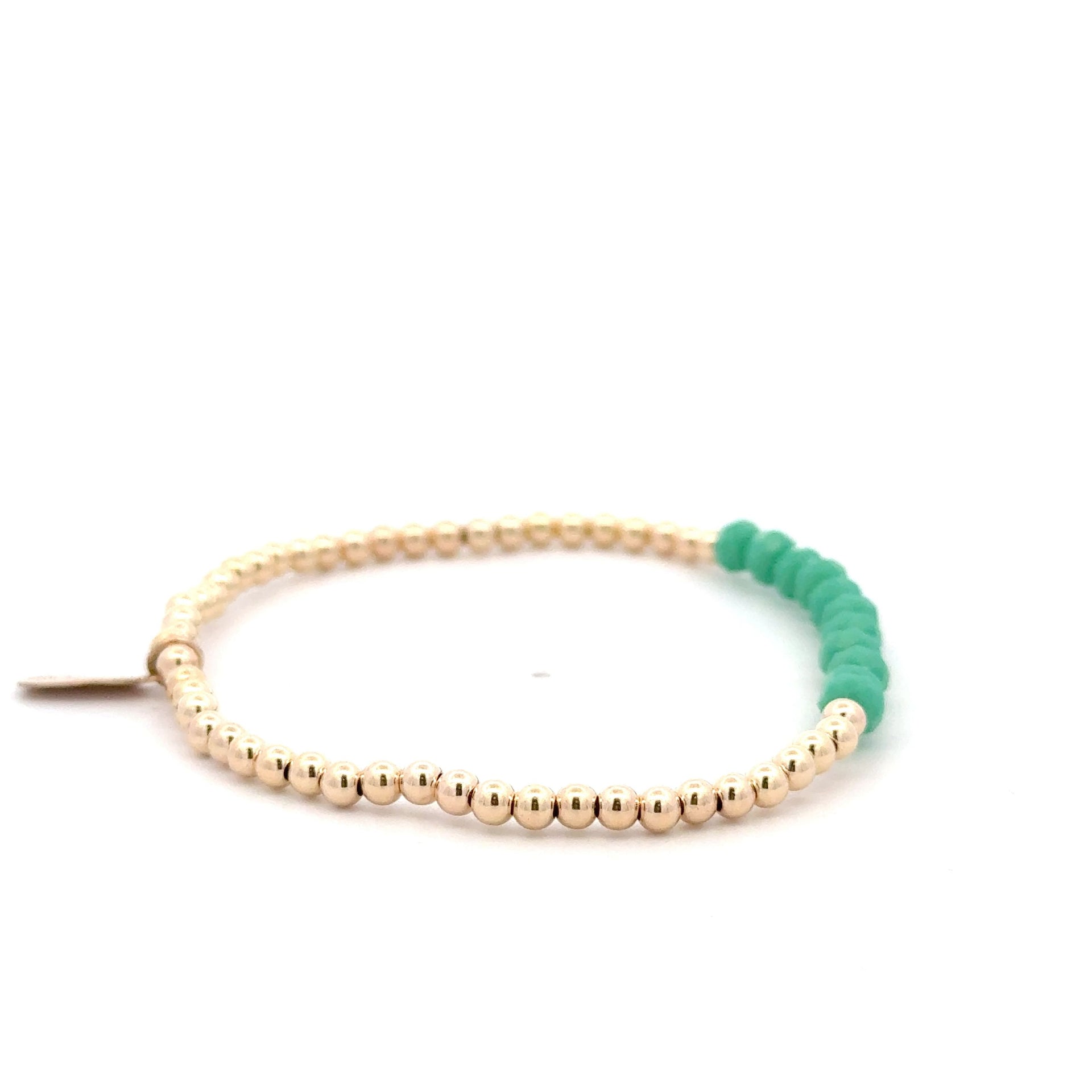 Elastic bracelet with gold-coloured beads and a row of coloured stones