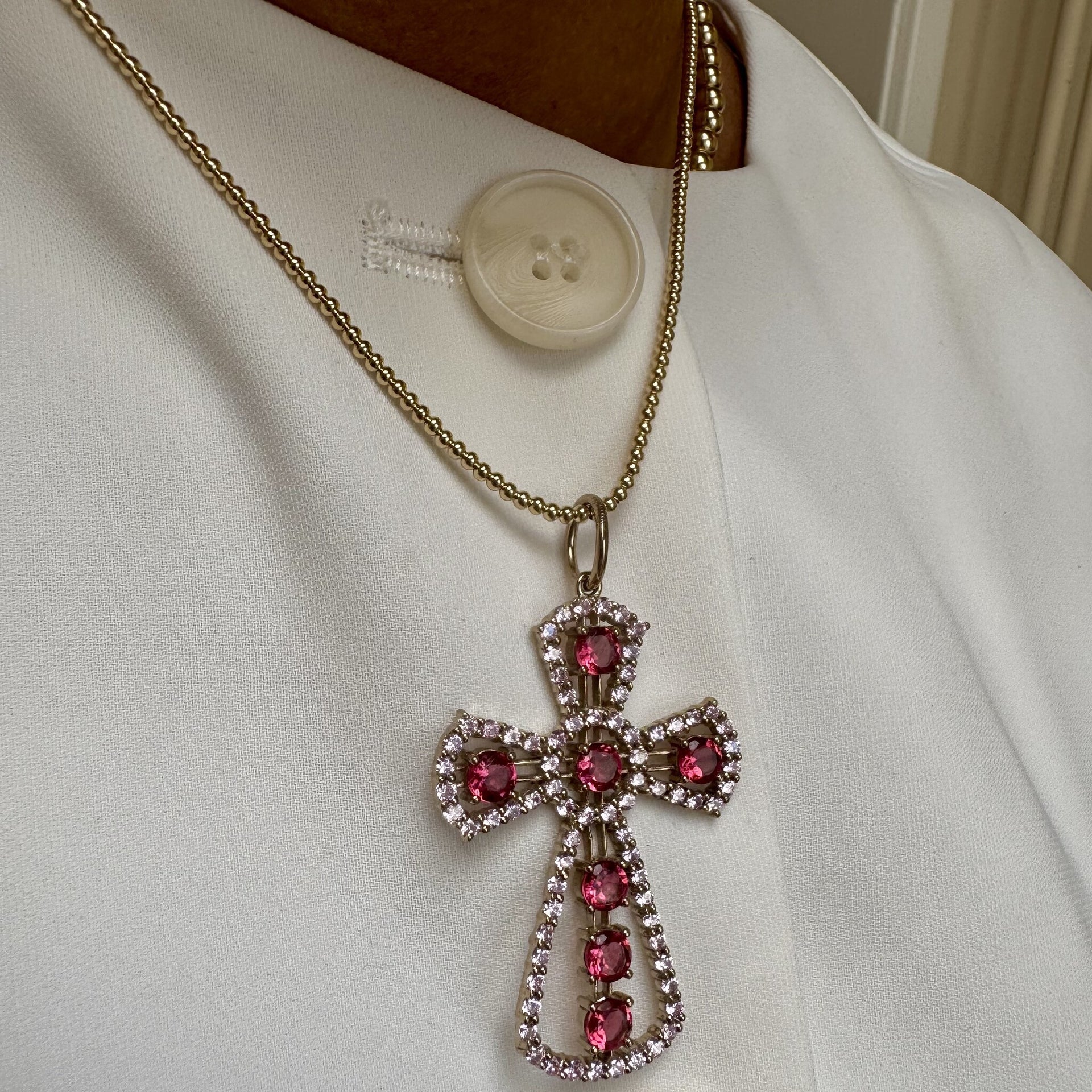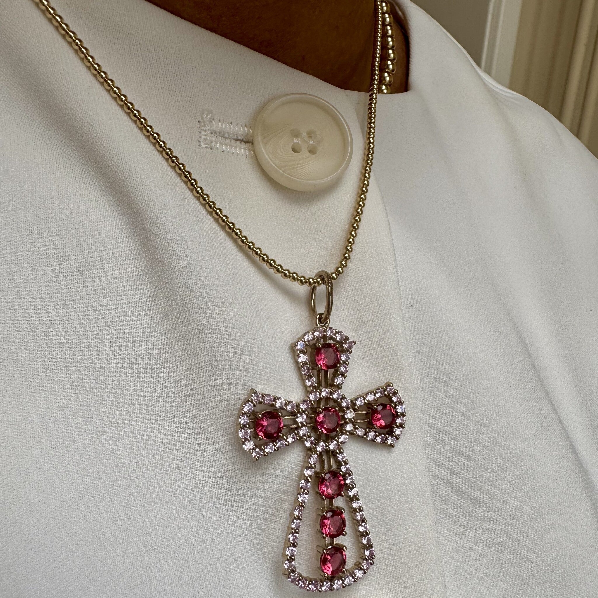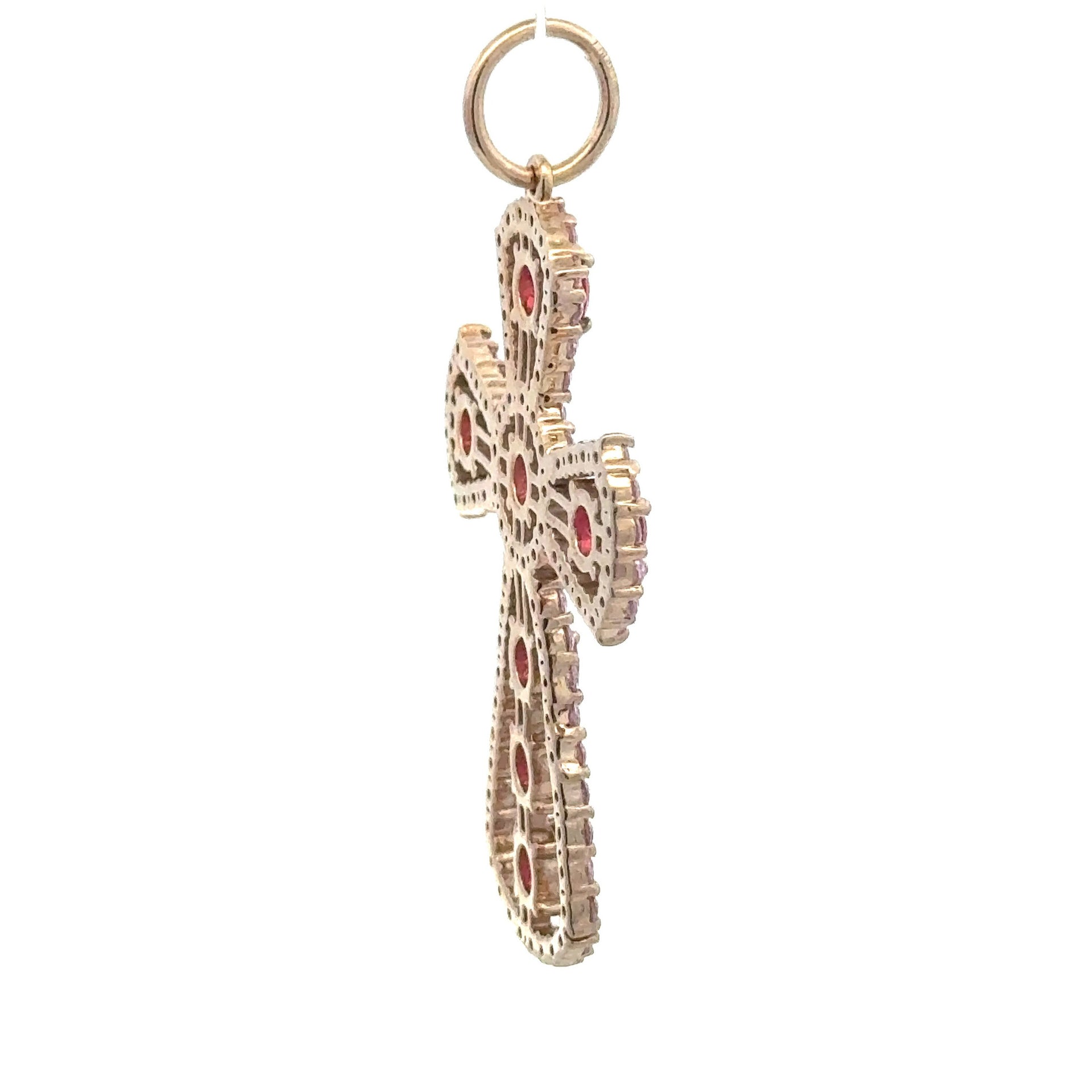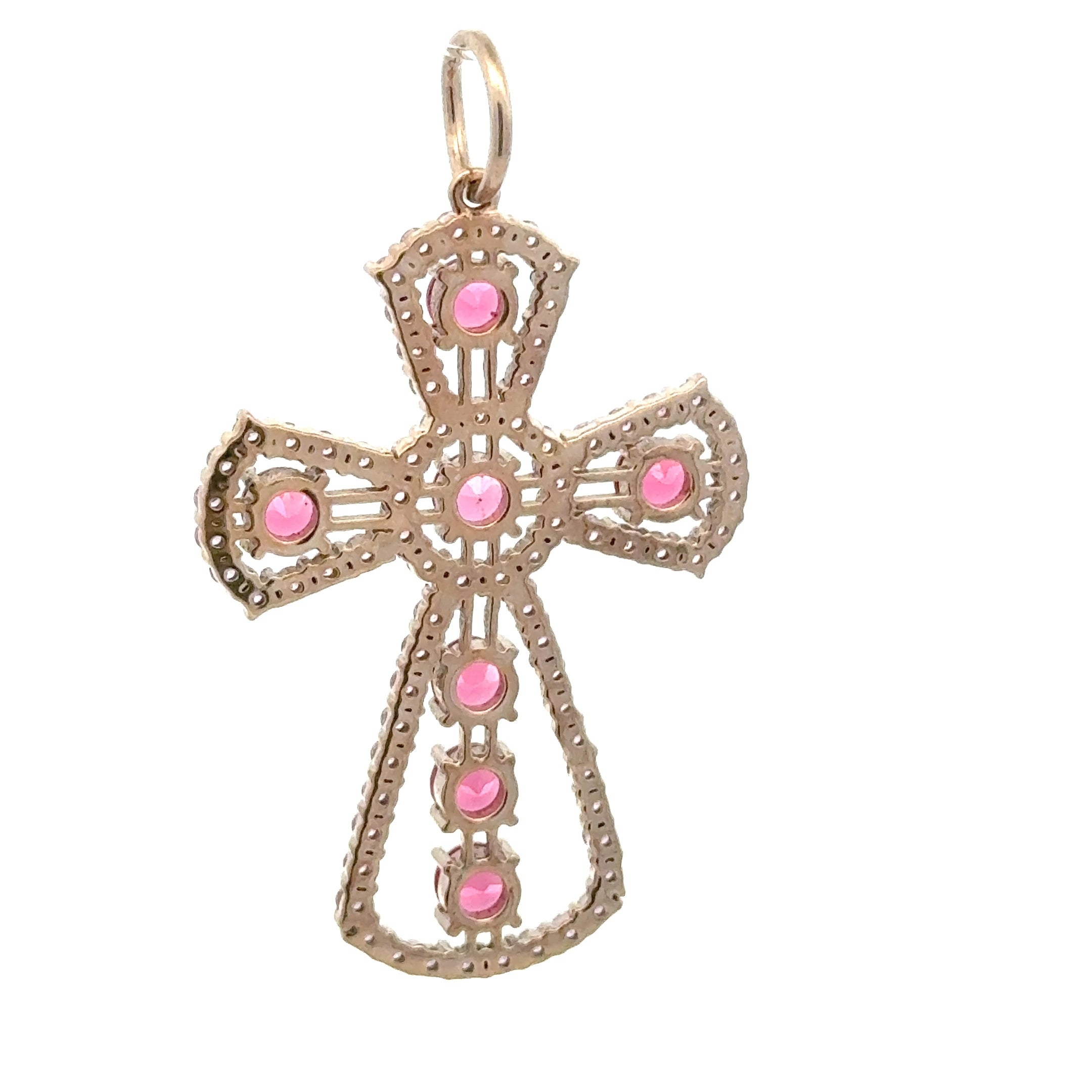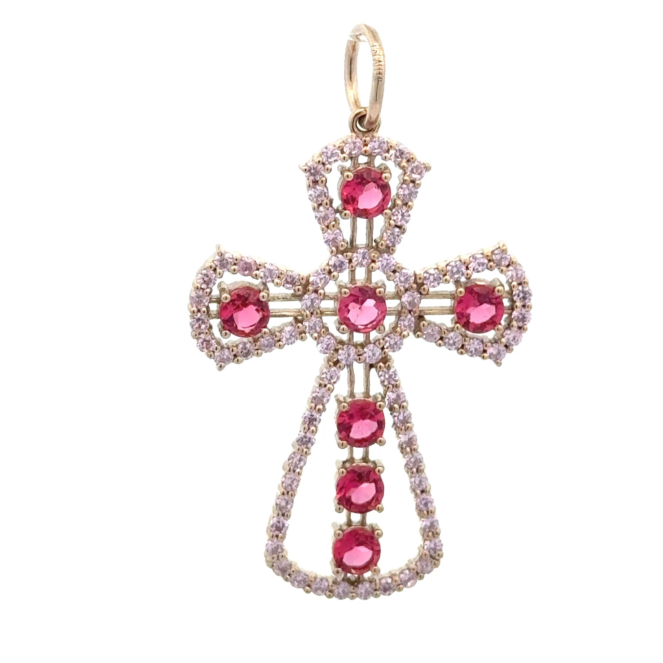 Charm cross big pink gold plated