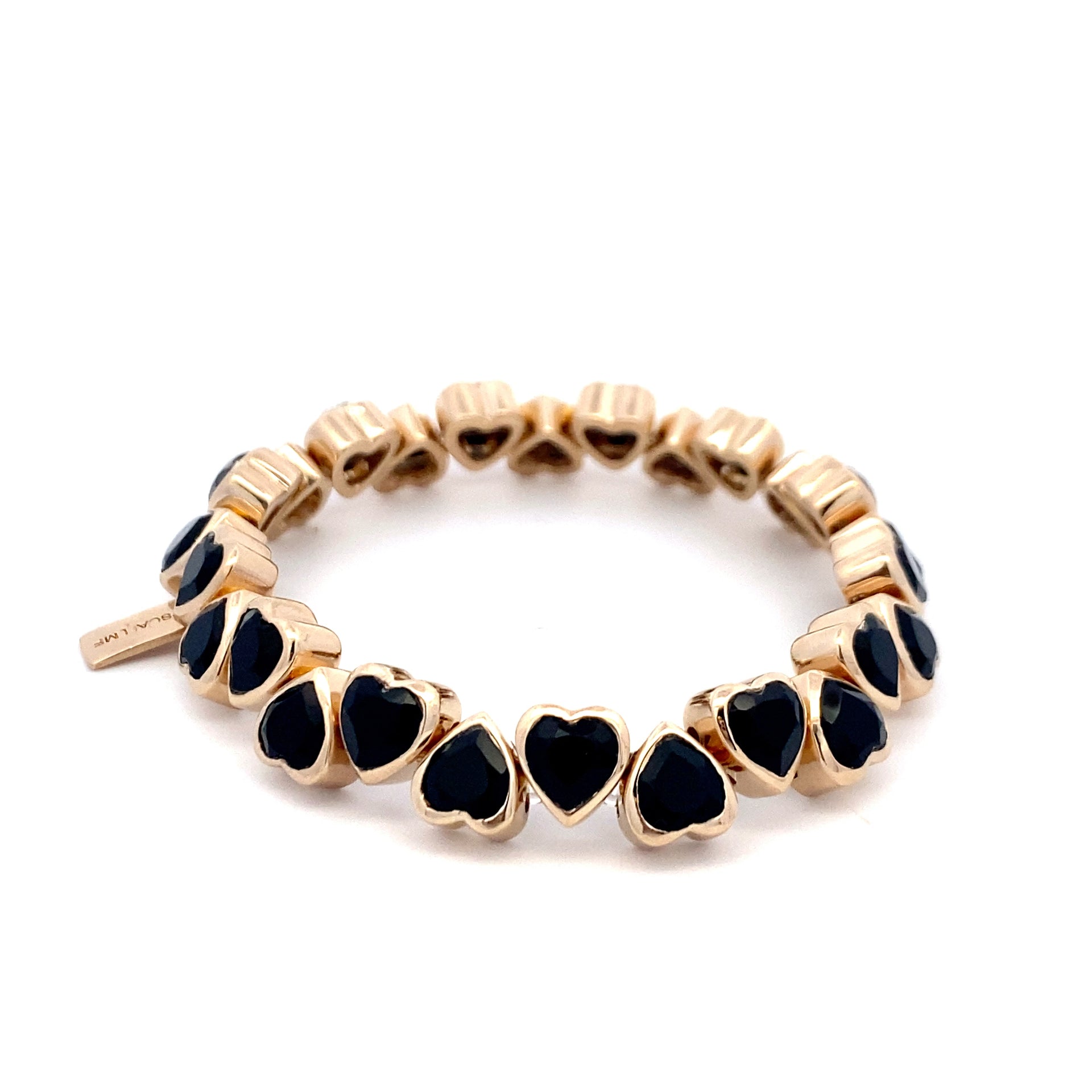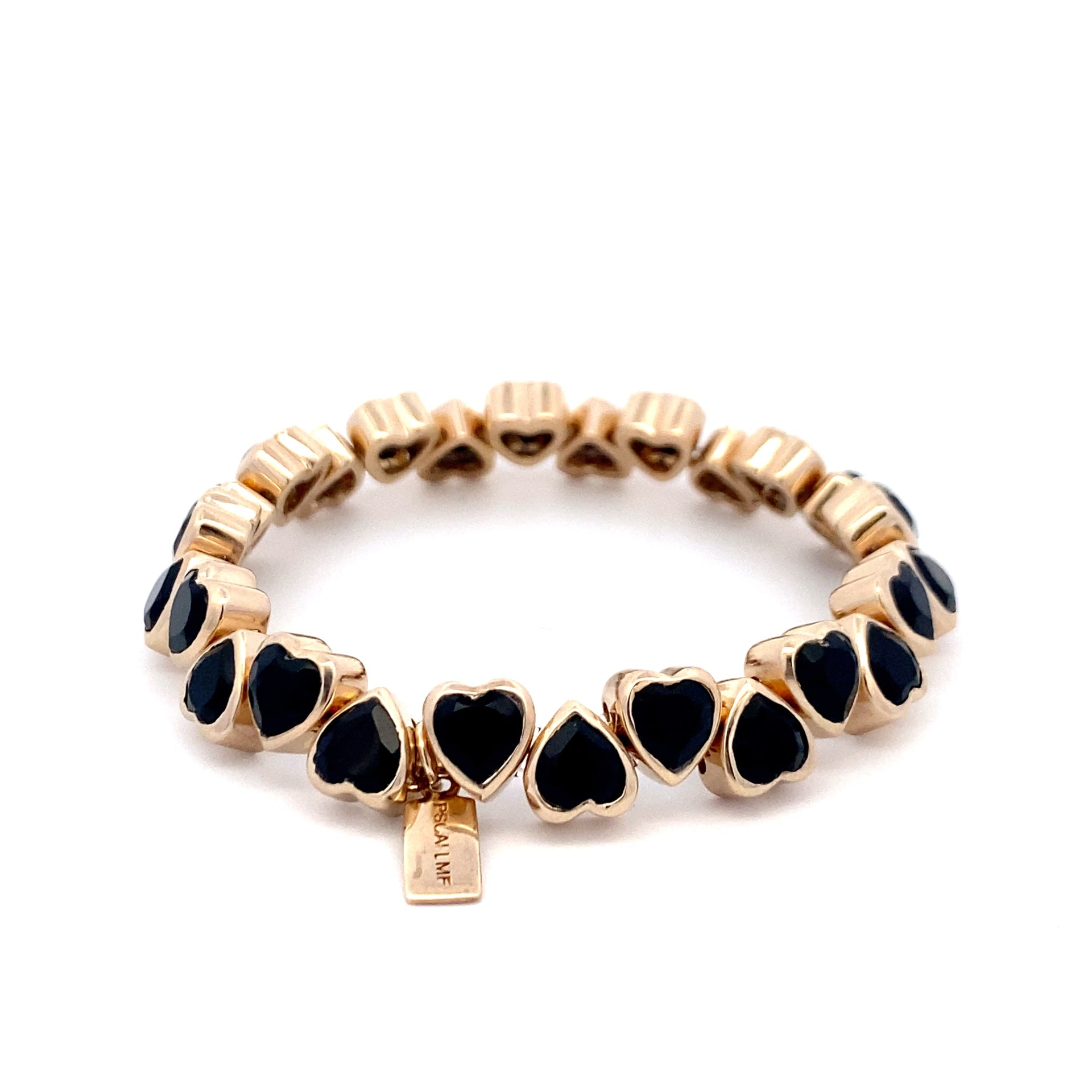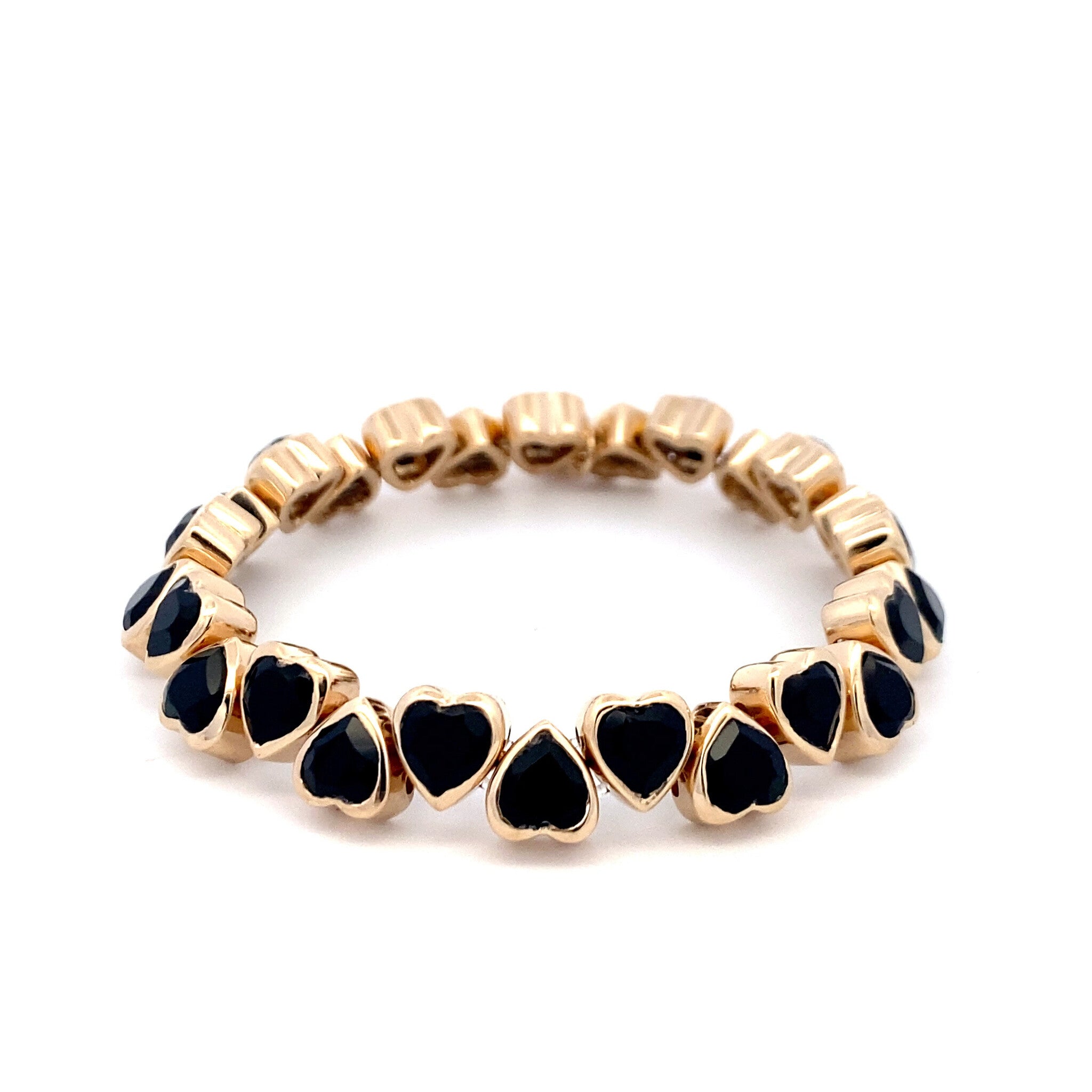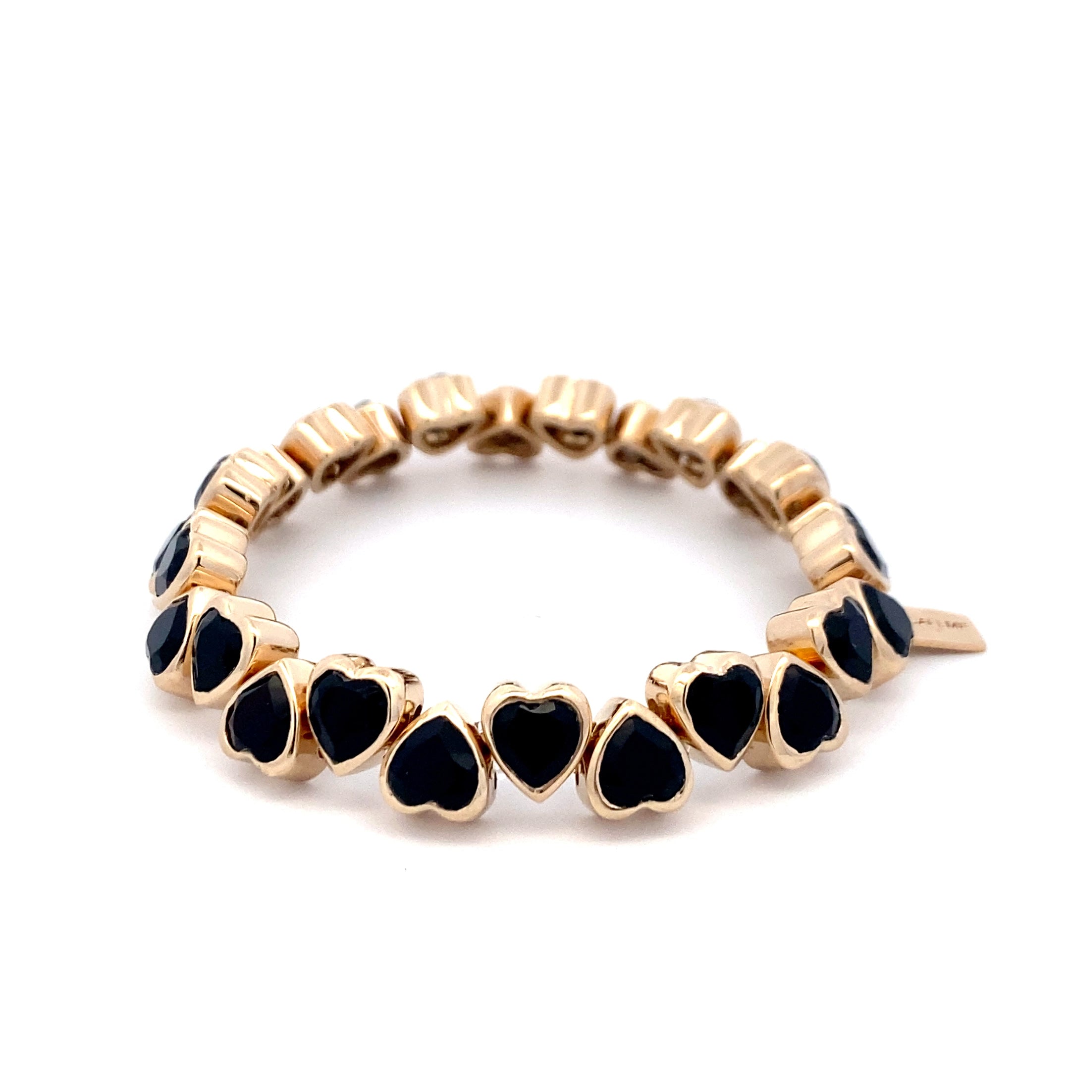 Elastic bracelet with gold-plated heart-shaped charms featuring faceted stones